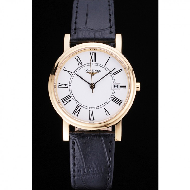 Longines La Grande Classique rotonda quadrante bianco cassa in oro nero della fascia del cuoio 622.382