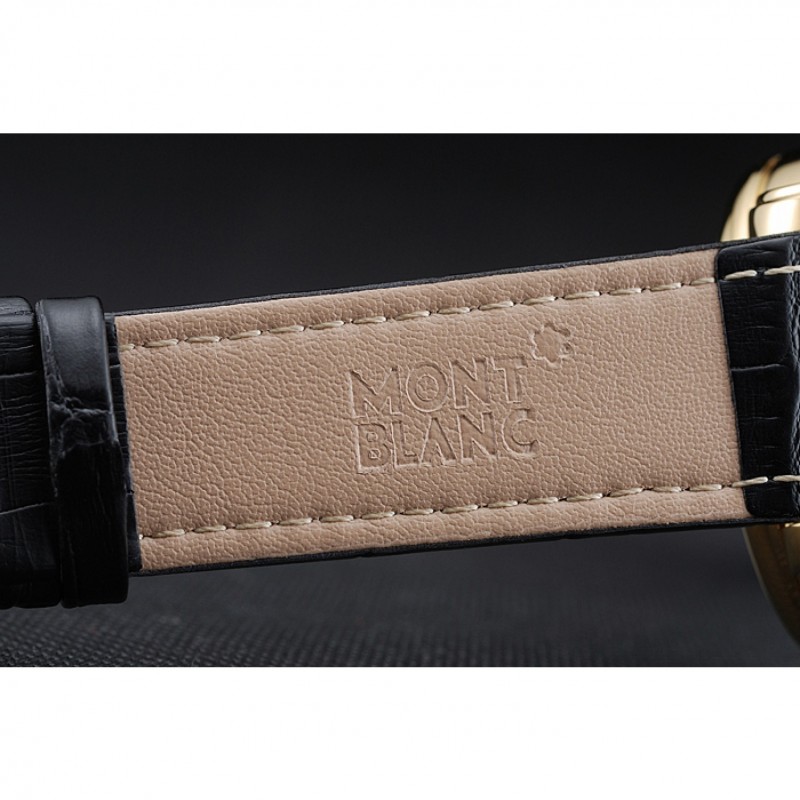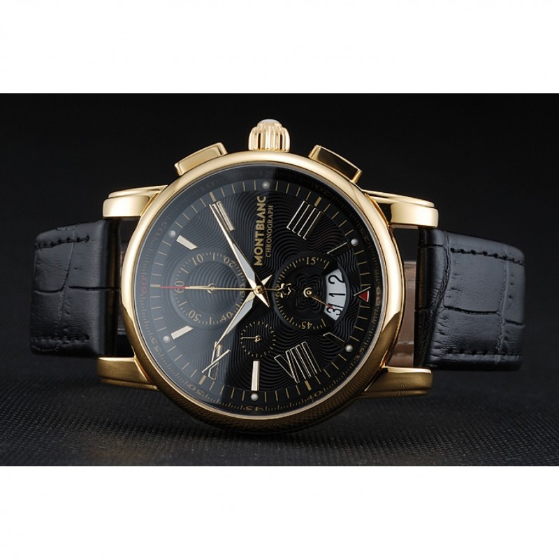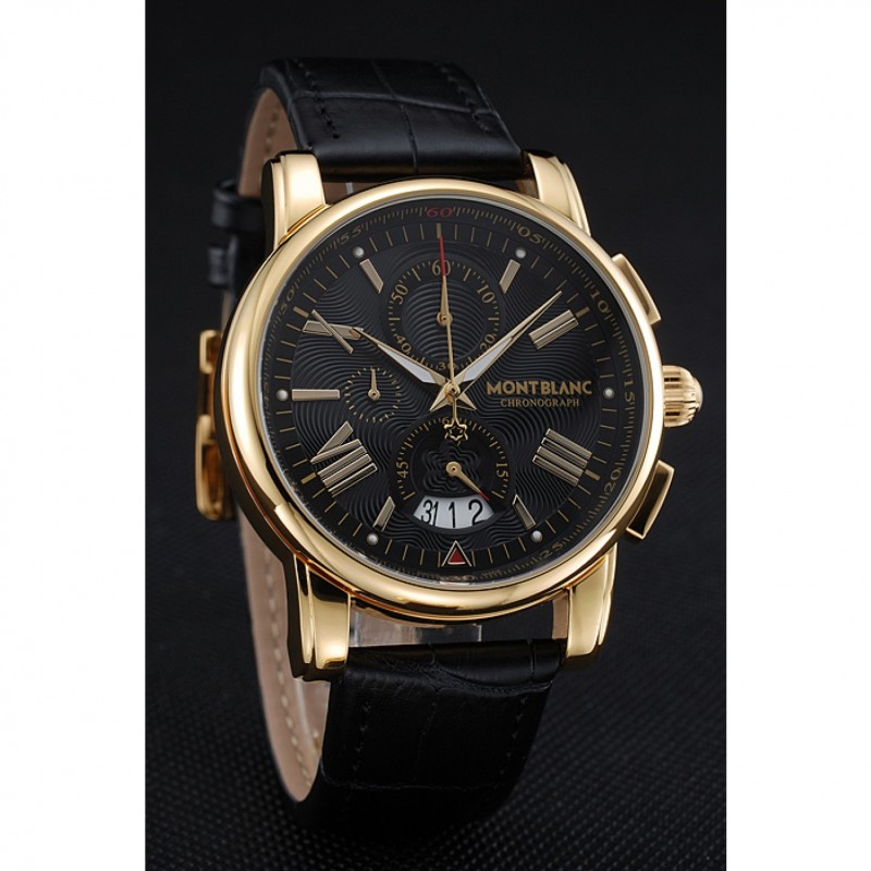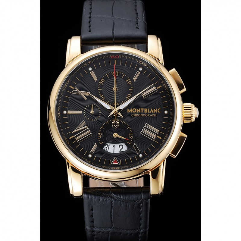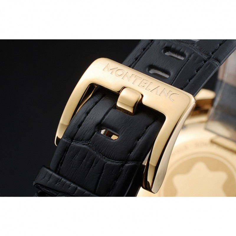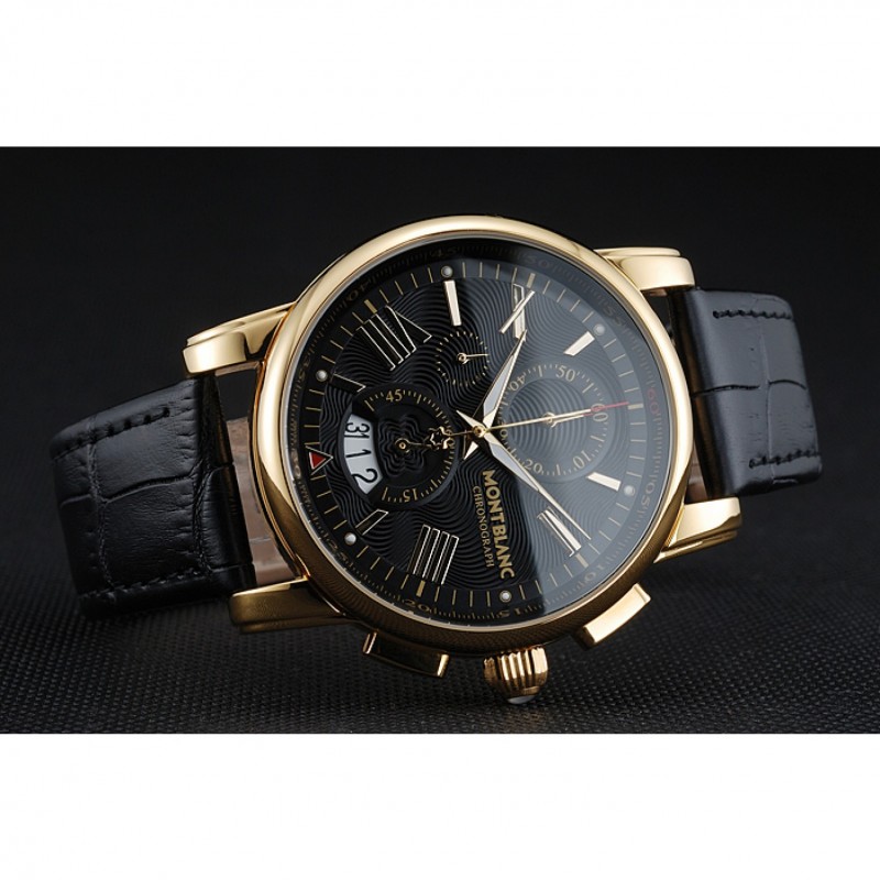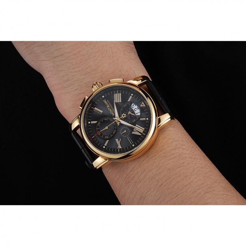 Montblanc Chronograph quadrante nero in pelle nera cassa in oro Bracciale 1454112