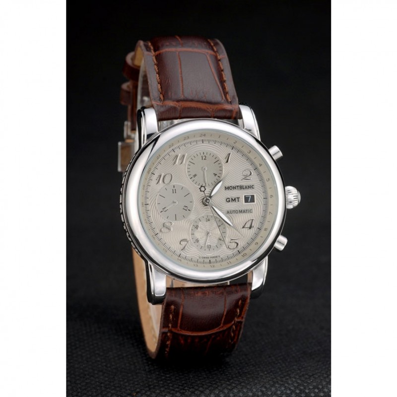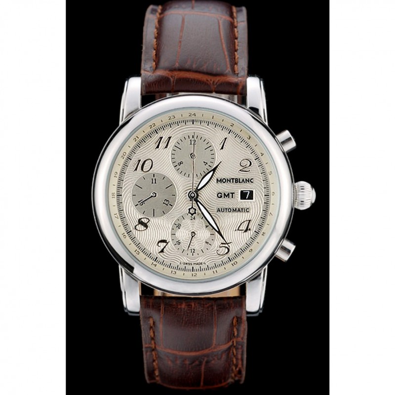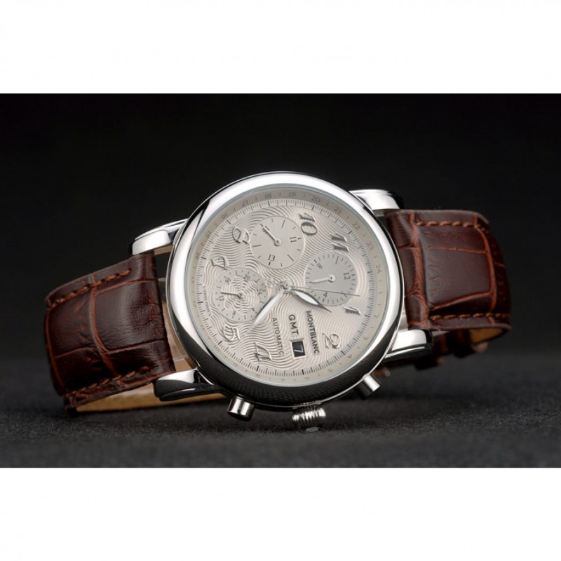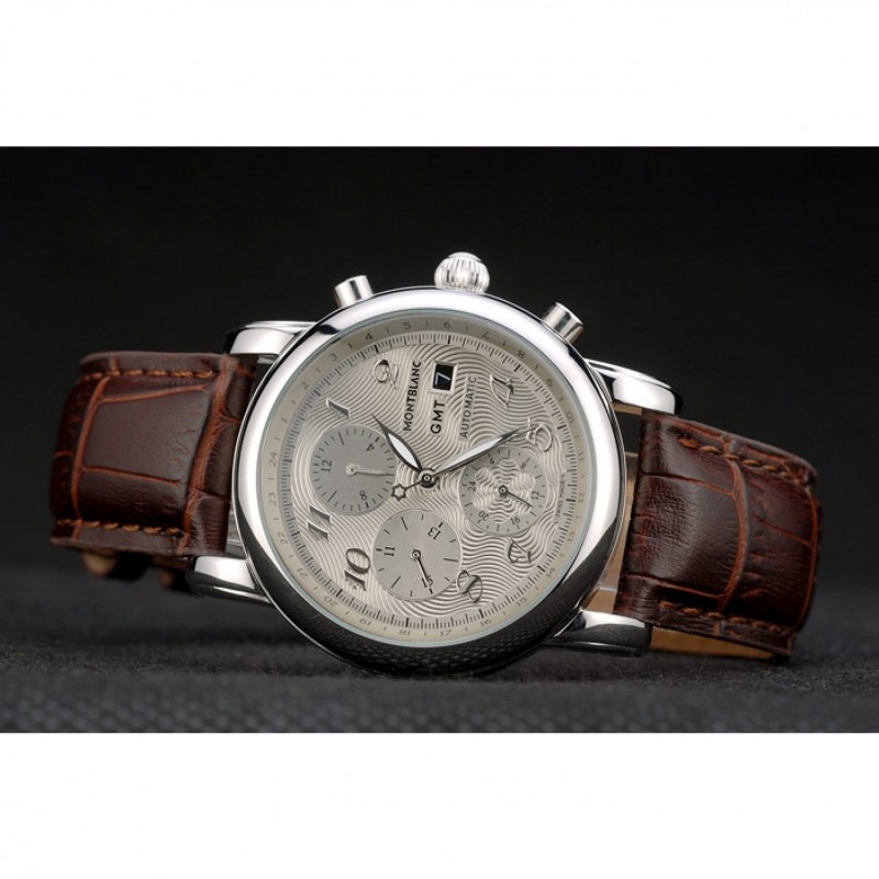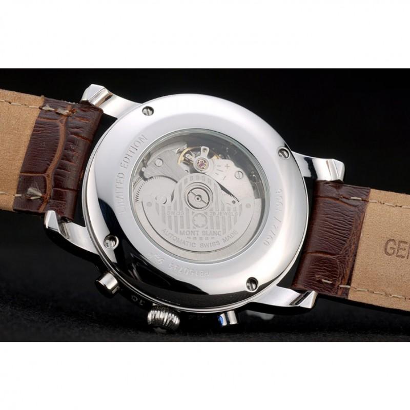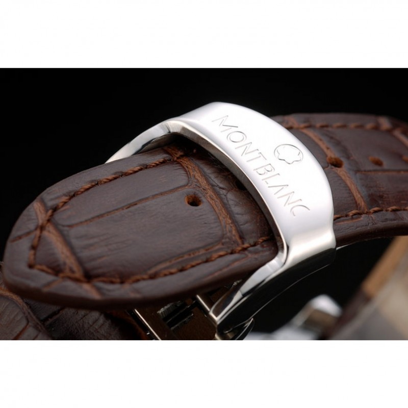 Crown: lucido acciaio inossidabile arrotondate corona intaglio con MontBlanc logo e due lucidata spinta in acciaio inox corone dei pulsanti su entrambi i lati di esso