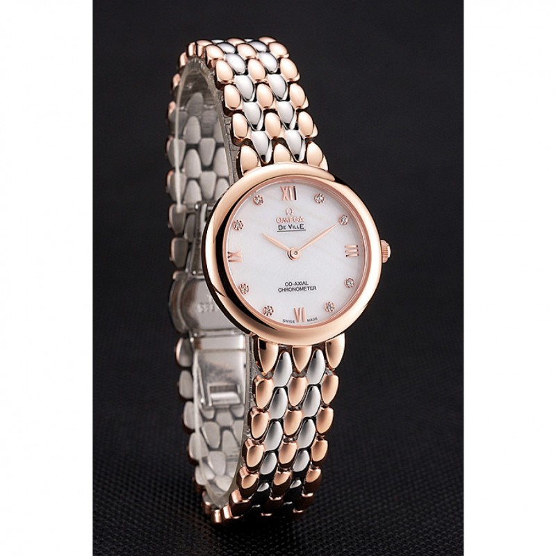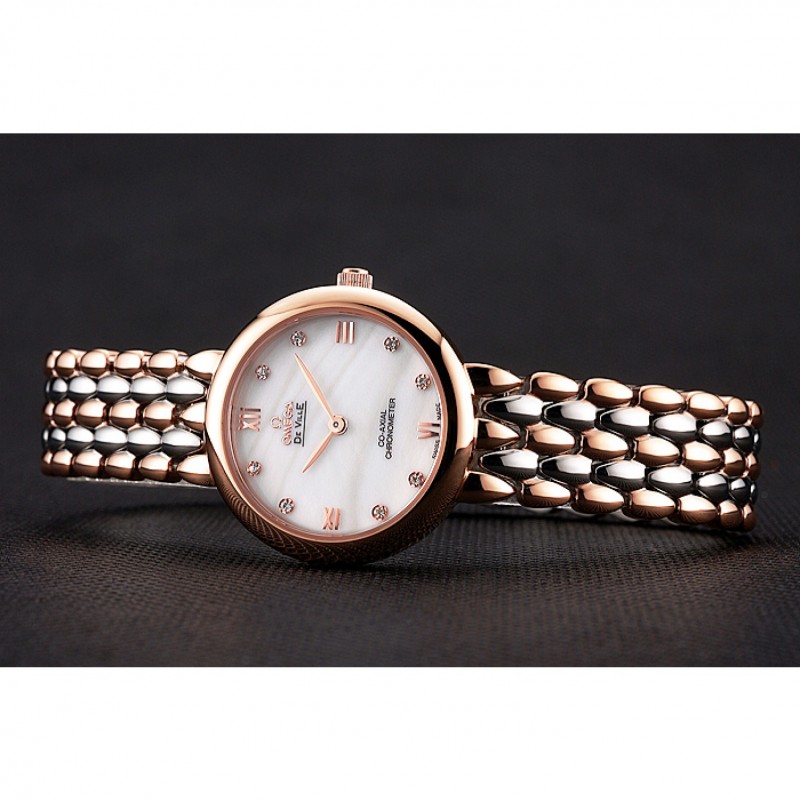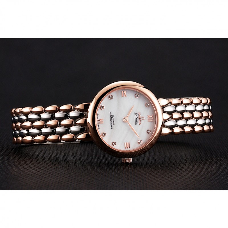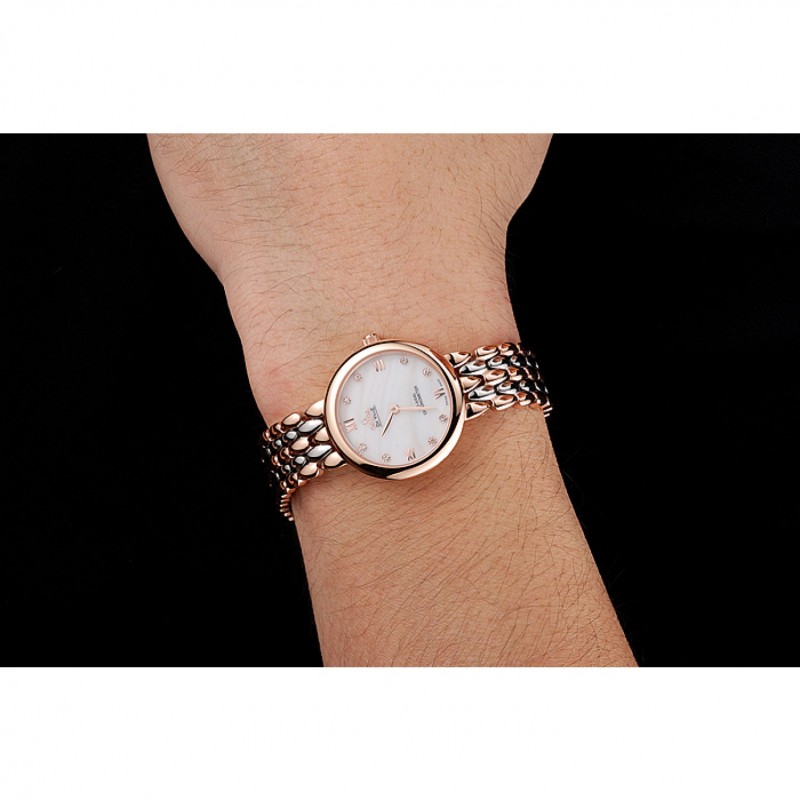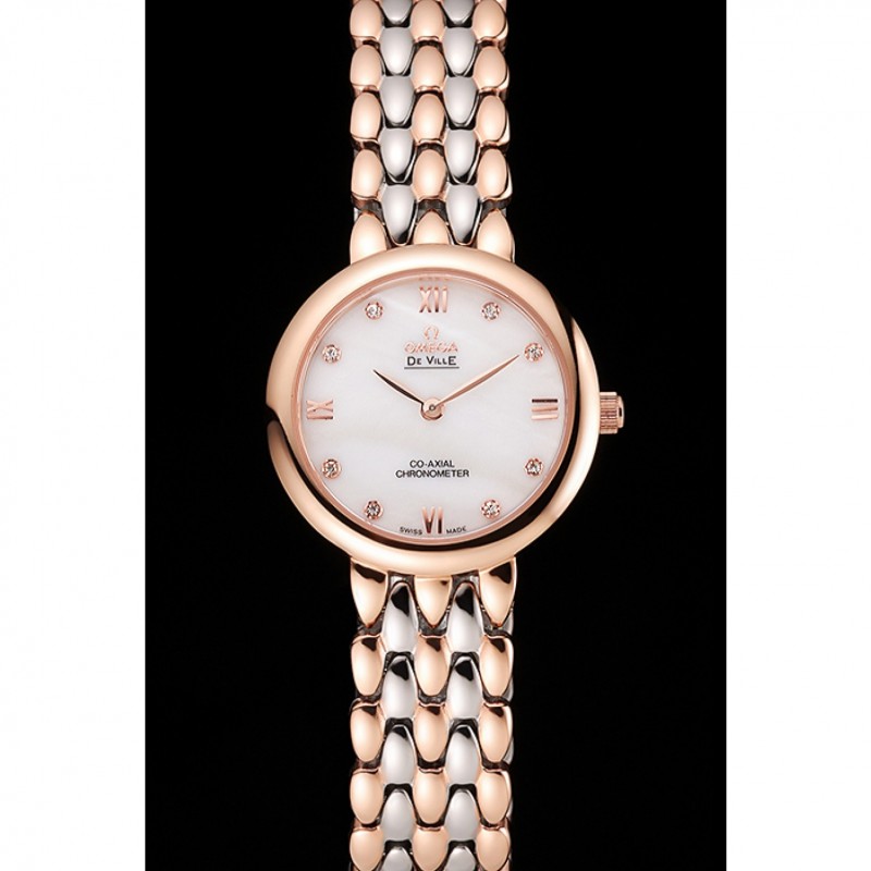Omega De Ville Prestige No Data quadrante bianco con diamanti cassa in oro rosa Two Tone Bracelet