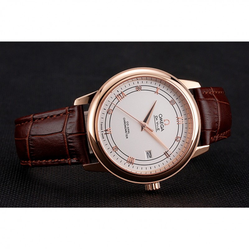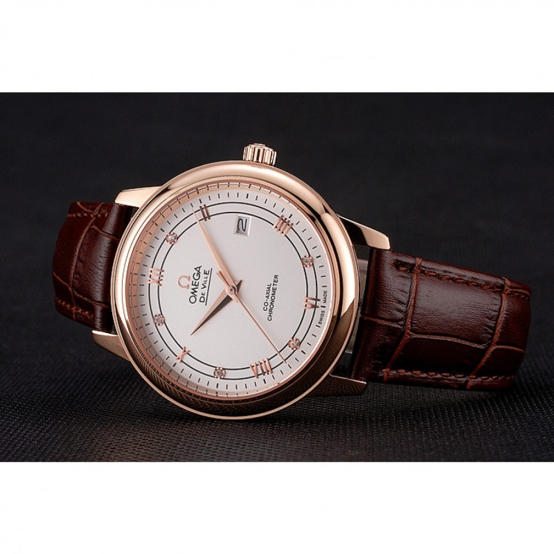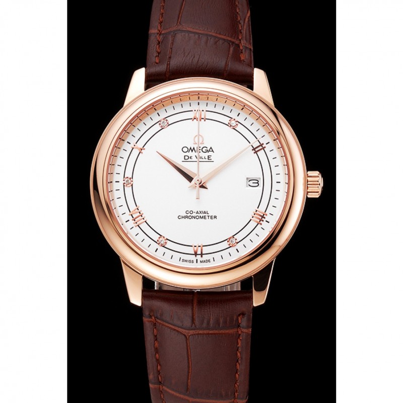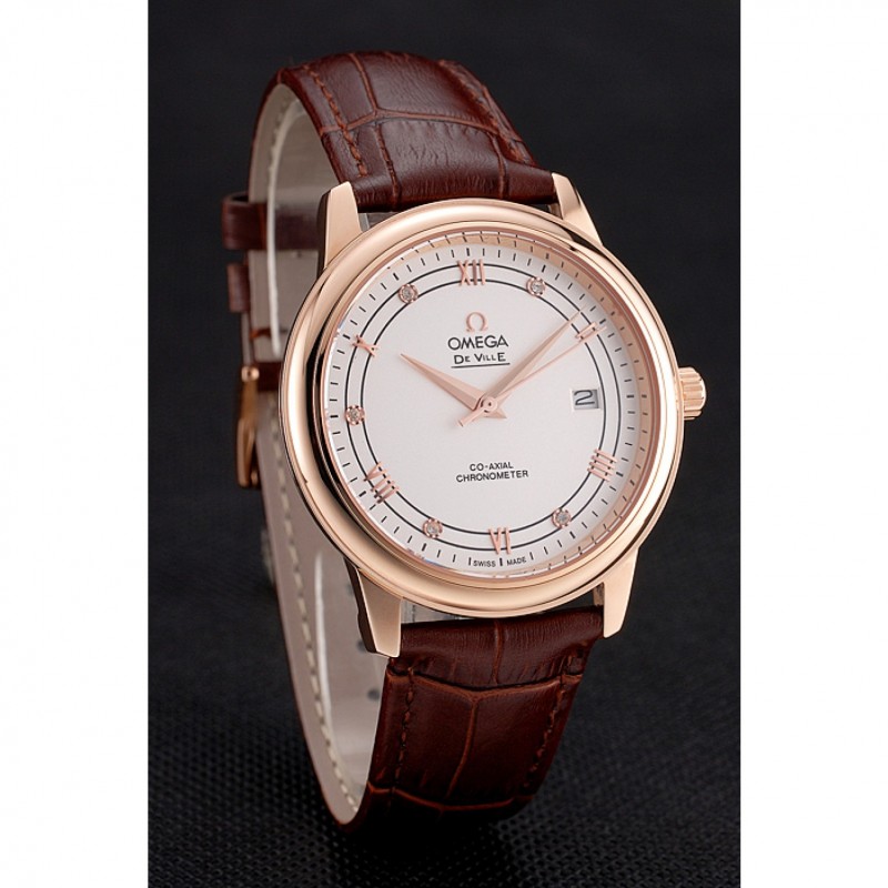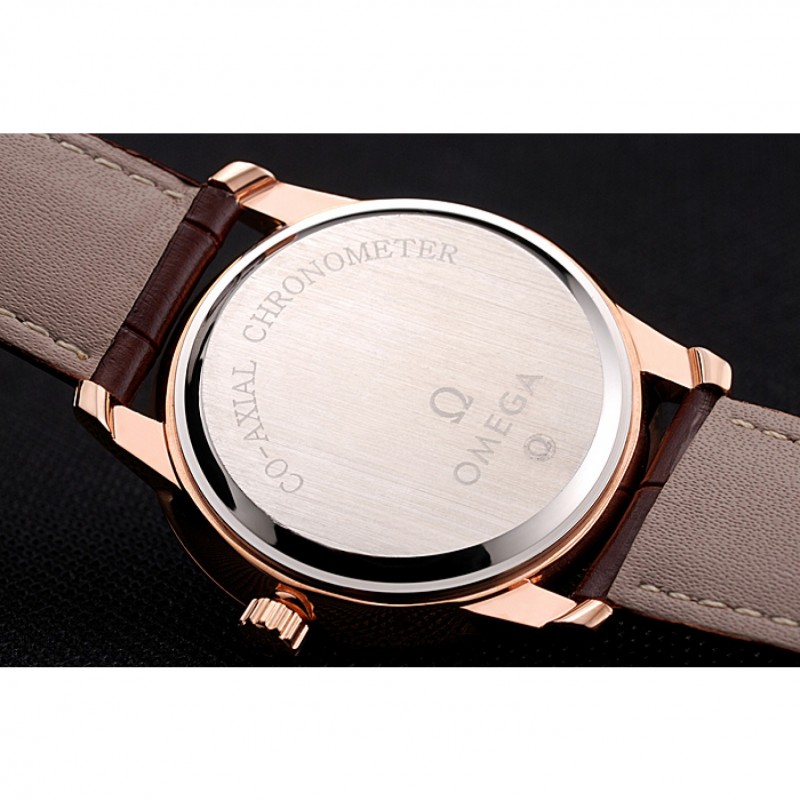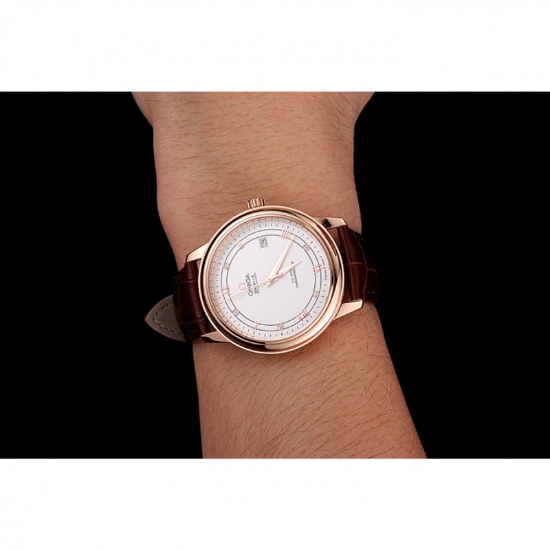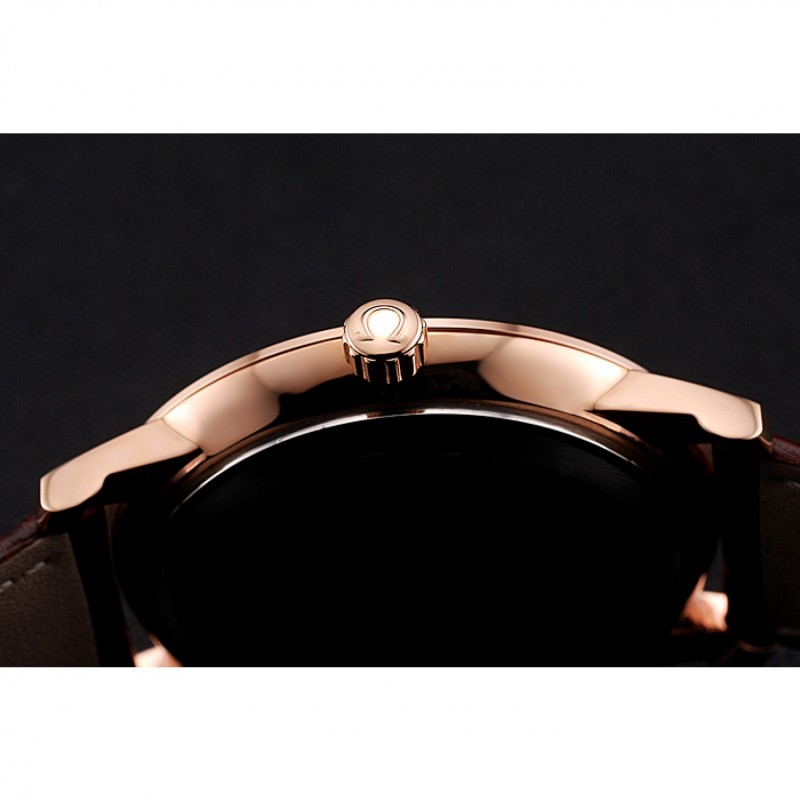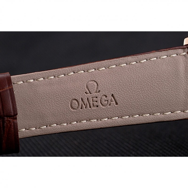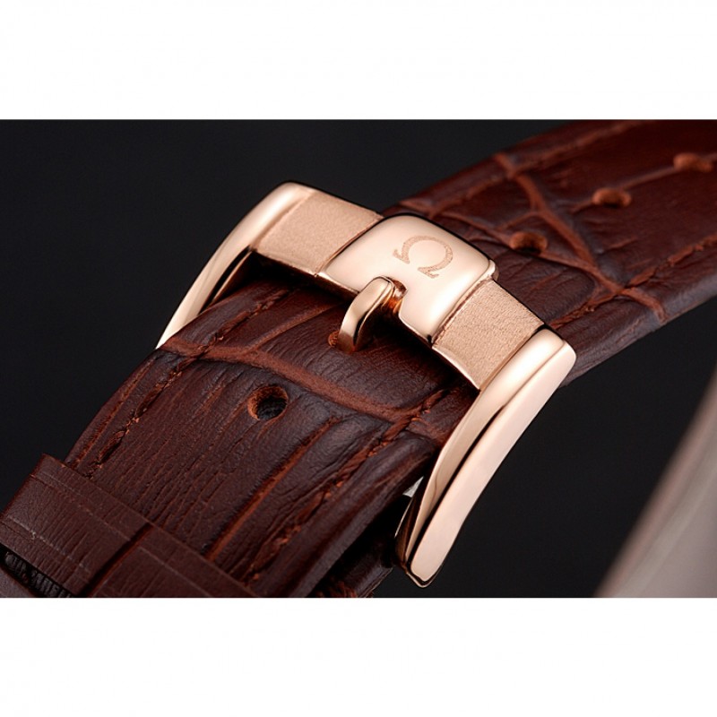 Bracciale: Omega e logo calore impresso cinturino in pelle di coccodrillo marrone con Omega logo 18k scolpito in oro rosa placcato catenaccio del gancio-fibbia
