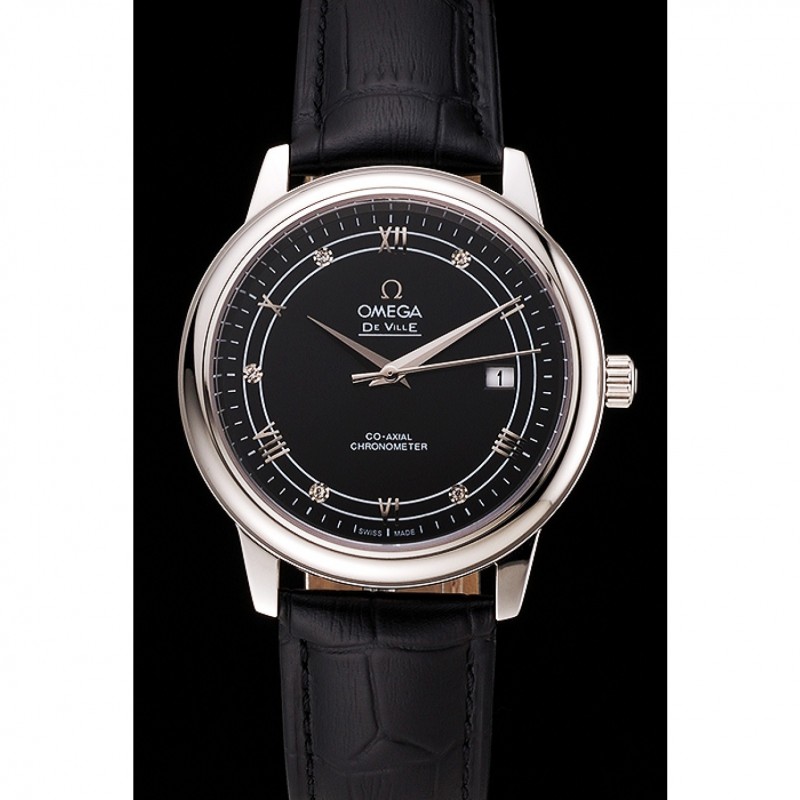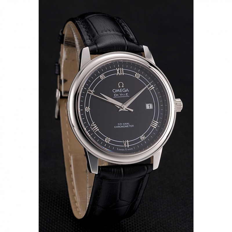 Bracciale: cinturino in pelle di coccodrillo nero Omega e il logo di calore in rilievo con Omega logo intagliato in acciaio inossidabile chiusura a gancio fibbia lucida