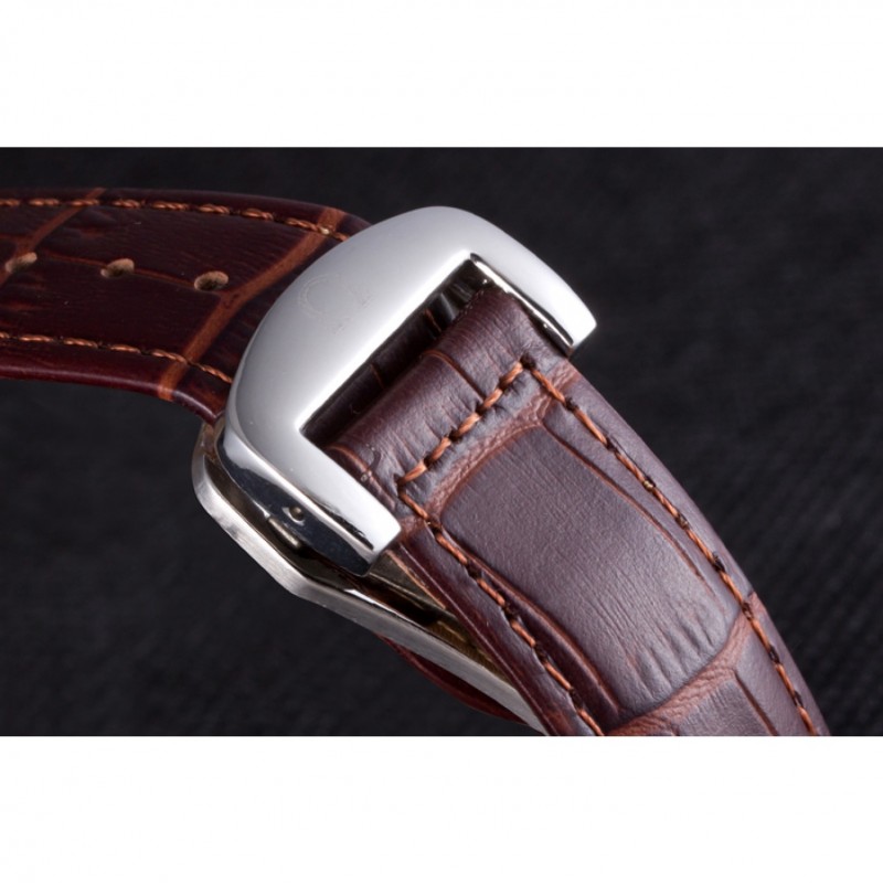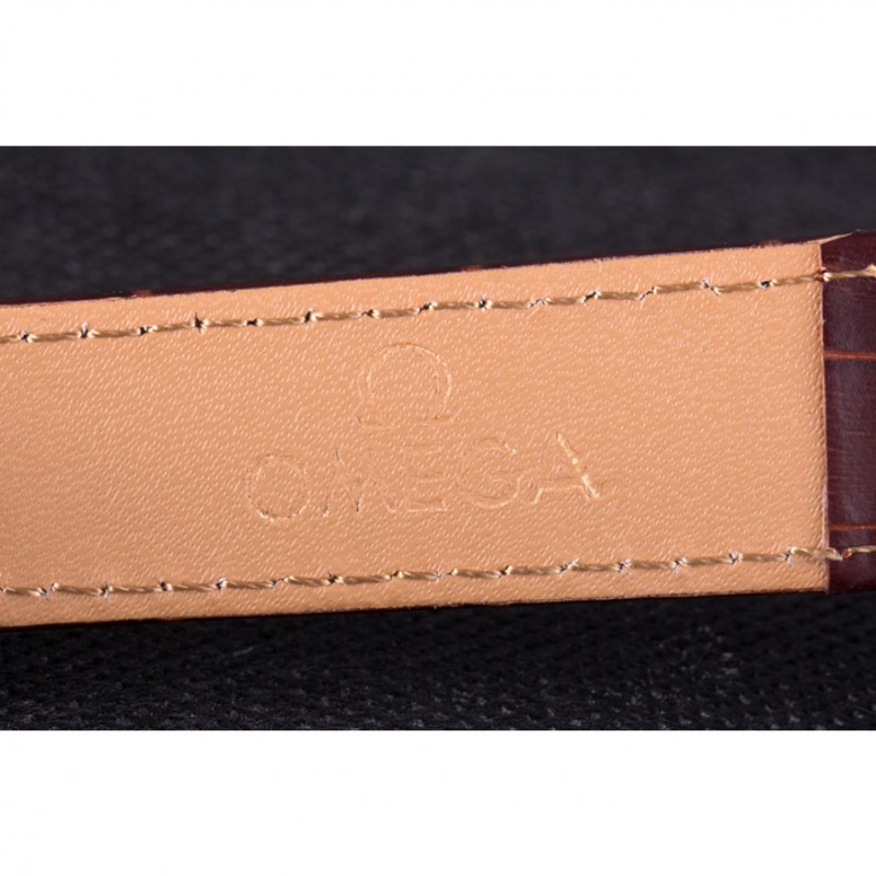 Bracciale: calore Omega impresso cinturino marrone in pelle di coccodrillo con Omega inscritto lucido chiusura gancio in acciaio inox