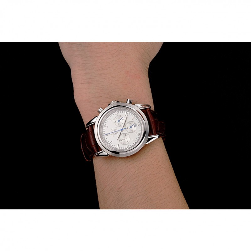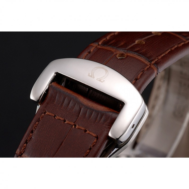 Bracciale: Brown cinturino in pelle di coccodrillo con cuciture bianche e Omega logo inciso in acciaio inox catenaccio del gancio-fibbia