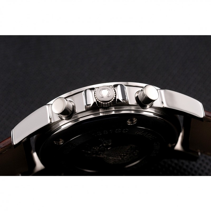 Corona: lucido corona intaglio in acciaio inox con Omega logo più due corone addizionali, uno su entrambi i lati di esso