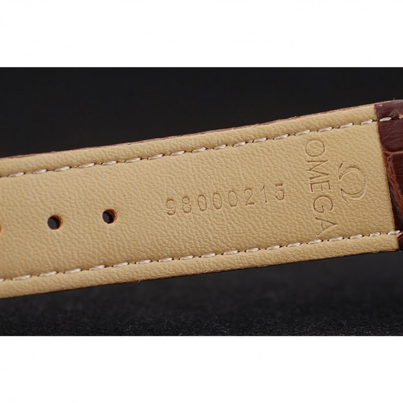 Bracciale: Brown cinturino in pelle di coccodrillo con il calore goffrato Omega, il logo e il codice del prodotto e il logo inciso acciaio inox lucido fold-in gancio chiusura push-rilascio