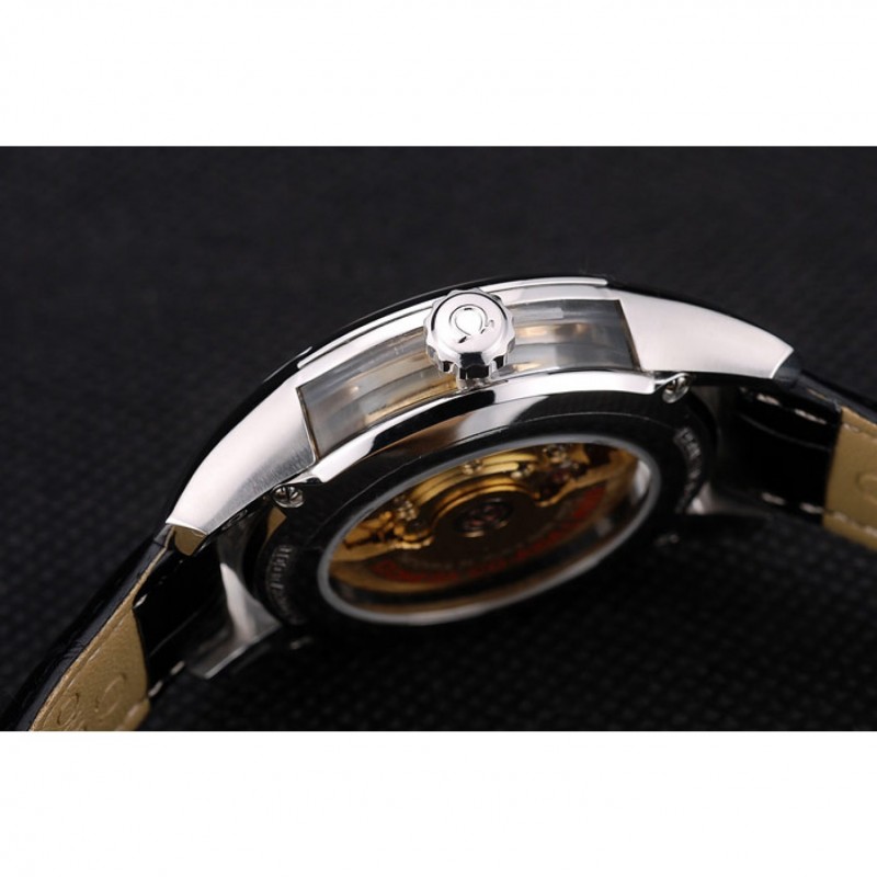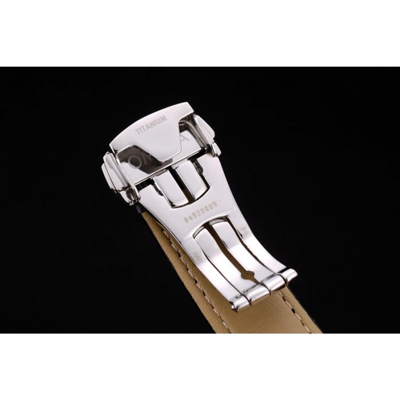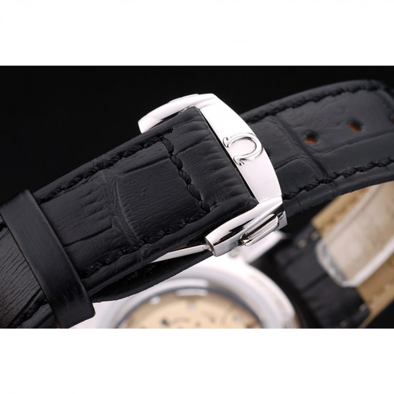 Bracciale: Black coccodrillo cinturino in pelle con il calore goffrato Omega, il logo e il codice del prodotto e il logo inciso acciaio inox lucido fold-in gancio chiusura push-rilascio