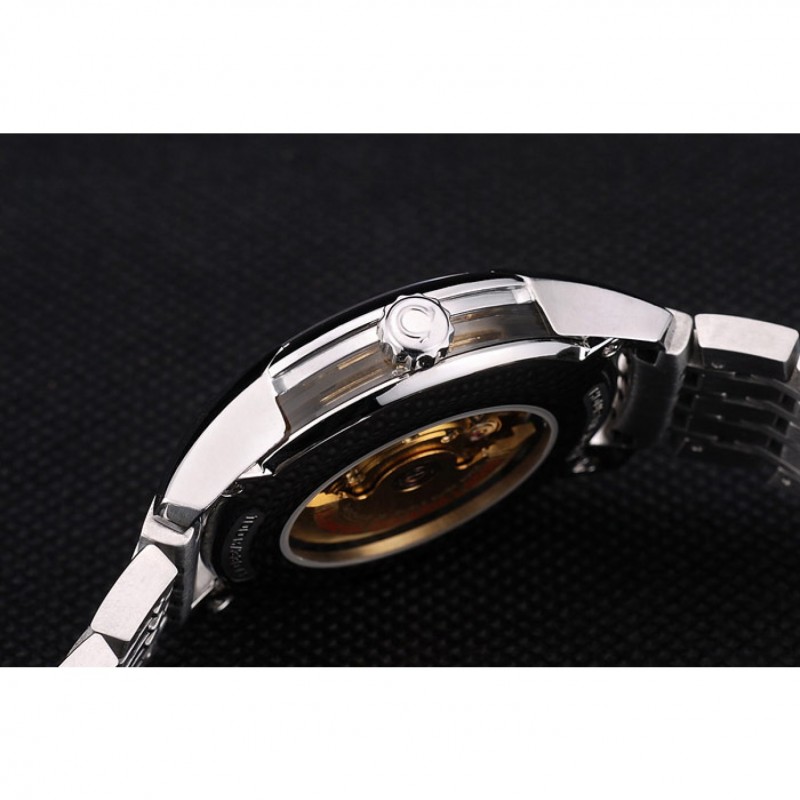 Torna: in acciaio inox lucido avvitato indietro con la meccanica-rivelatrice trasparenti centro e incisioni Omega
