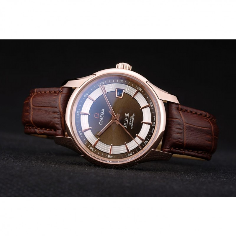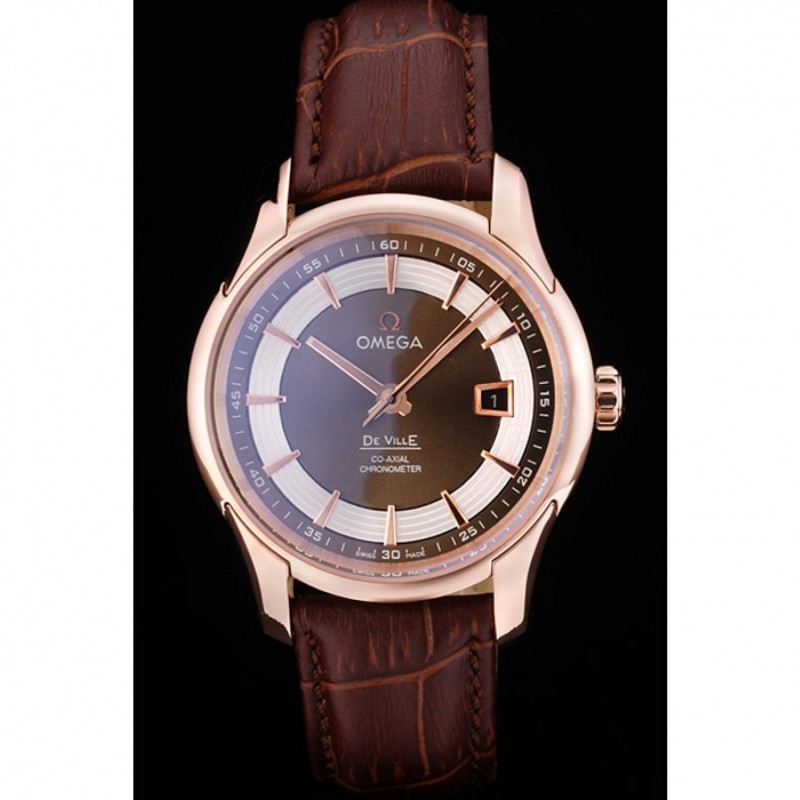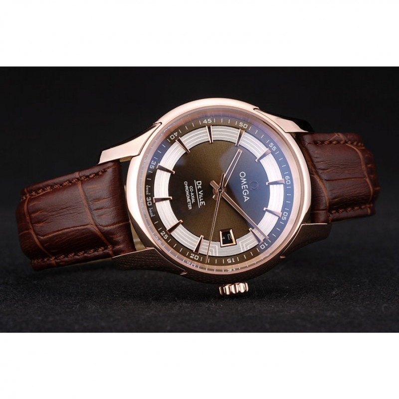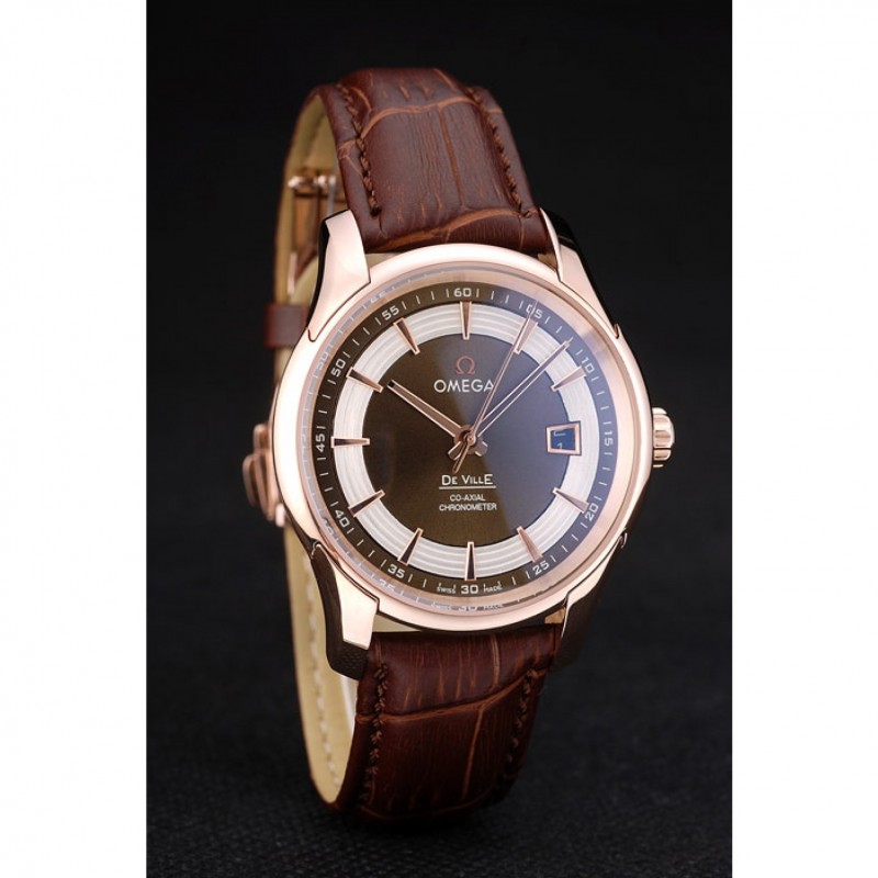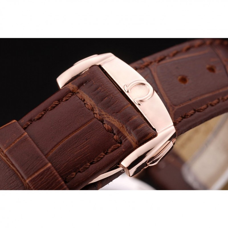 Bracciale: Brown cinturino in coccodrillo con calore impresso Omega, logo e codice prodotto e il logo 18k inciso placcato piegare-in gancio chiusura