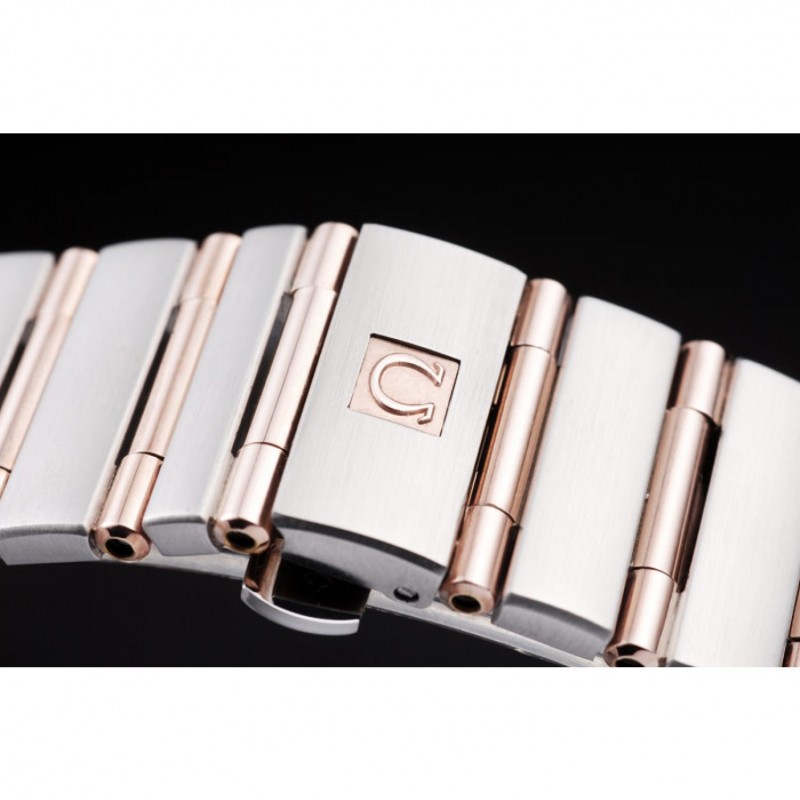 Bracciale: spazzolato acciaio inox e Rose- bracciale catena a maglia d’oro con chiusura nascosta e Omega logo sulla parte superiore