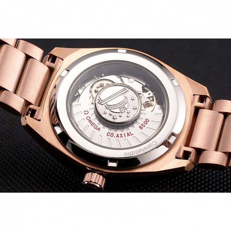 Indietro: trasparente meccanica-rivelatrice torna con un acciaio inossidabile lucidato snap-in cerchio e Omega iscrizione