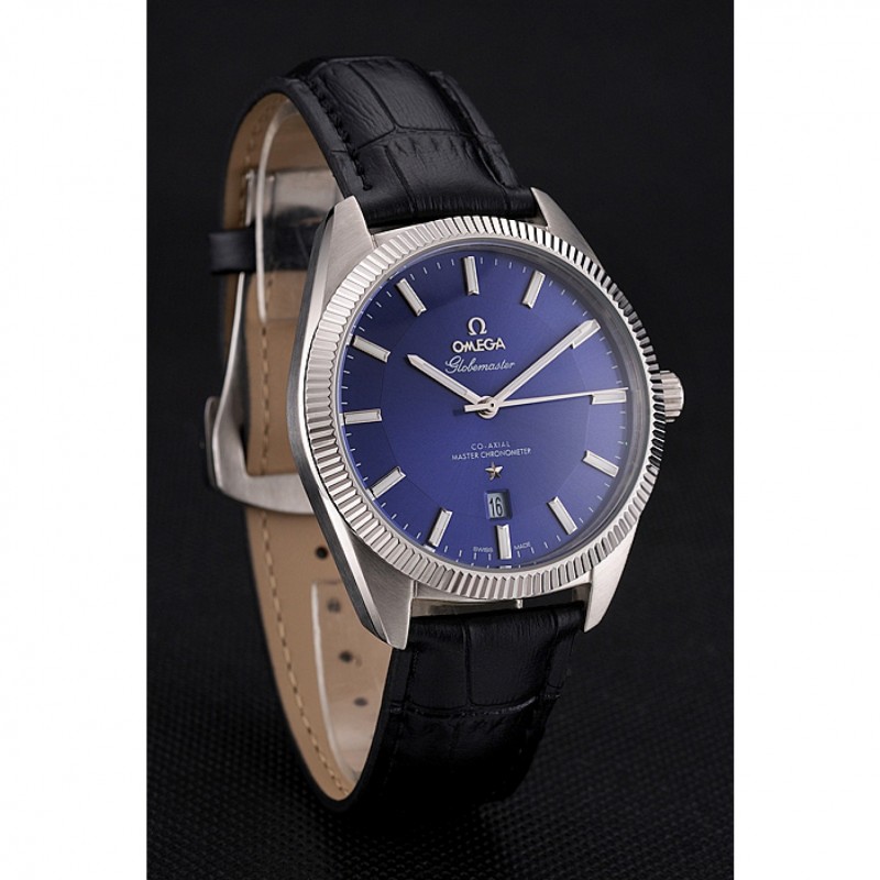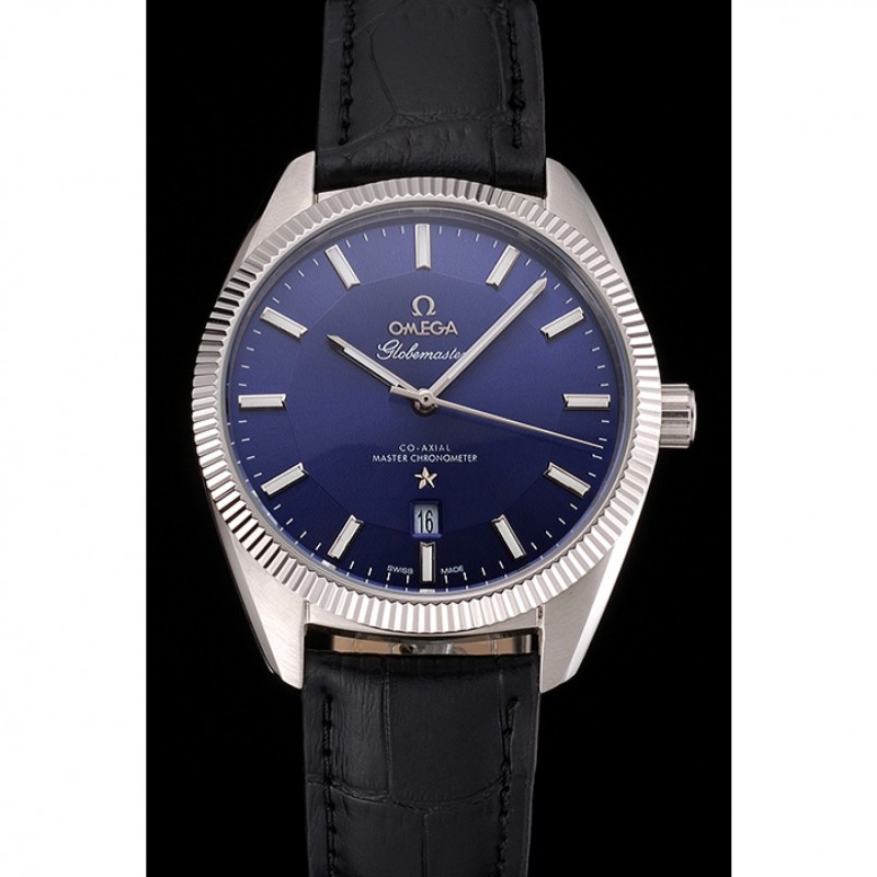Bracciale: logo e calore Omega goffrato cinturino in pelle di coccodrillo nera con logo inciso acciaio inox lucido gancio-chiusura