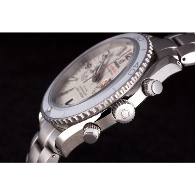 corona: Omega logo inciso lucido corona intaglio in acciaio inox con una corona pulsante su entrambi i lati e una corona intaglio sulla parte superiore adiacente