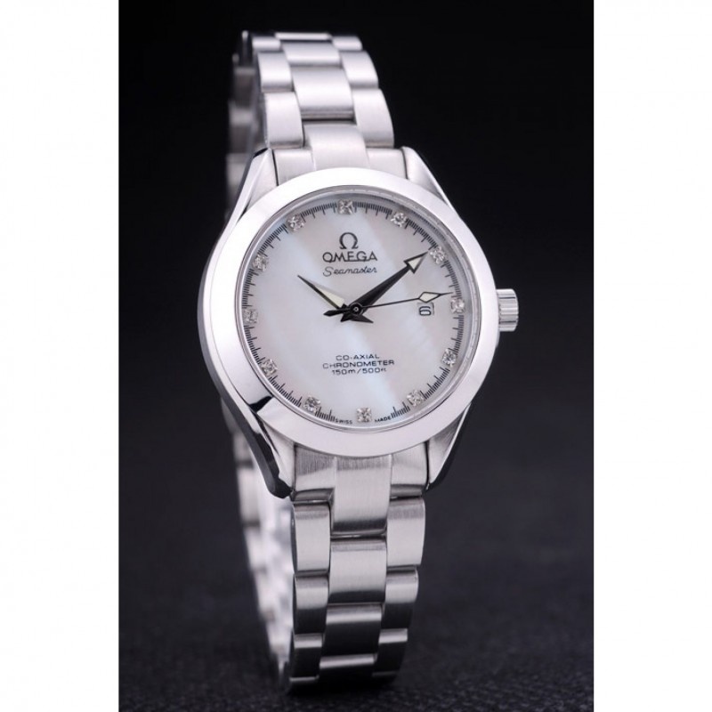 Torna: in acciaio inox lucidato a scatto sul retro con iscrizioni Omega