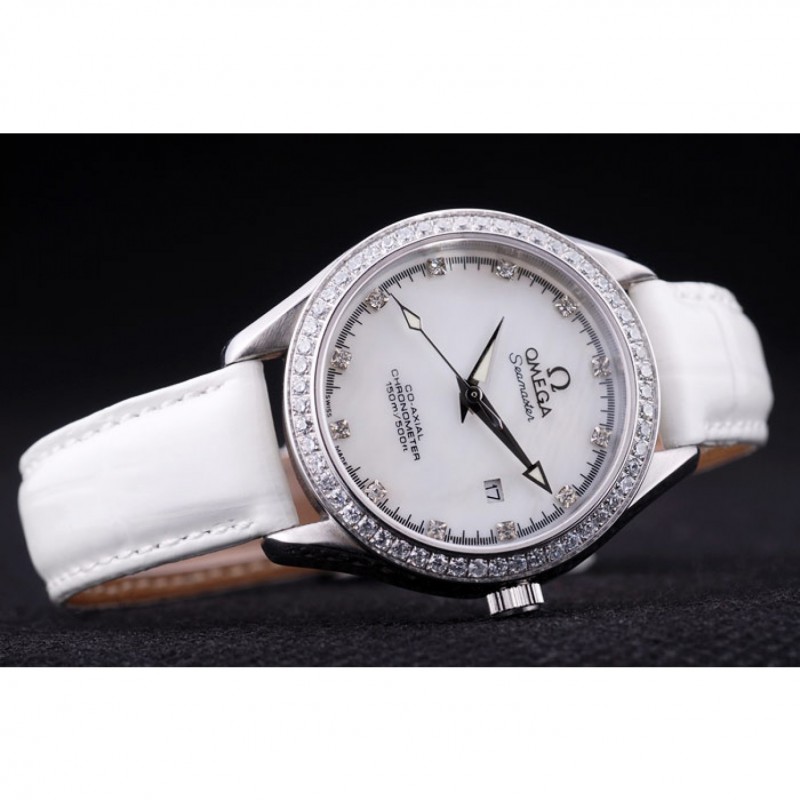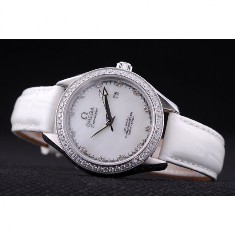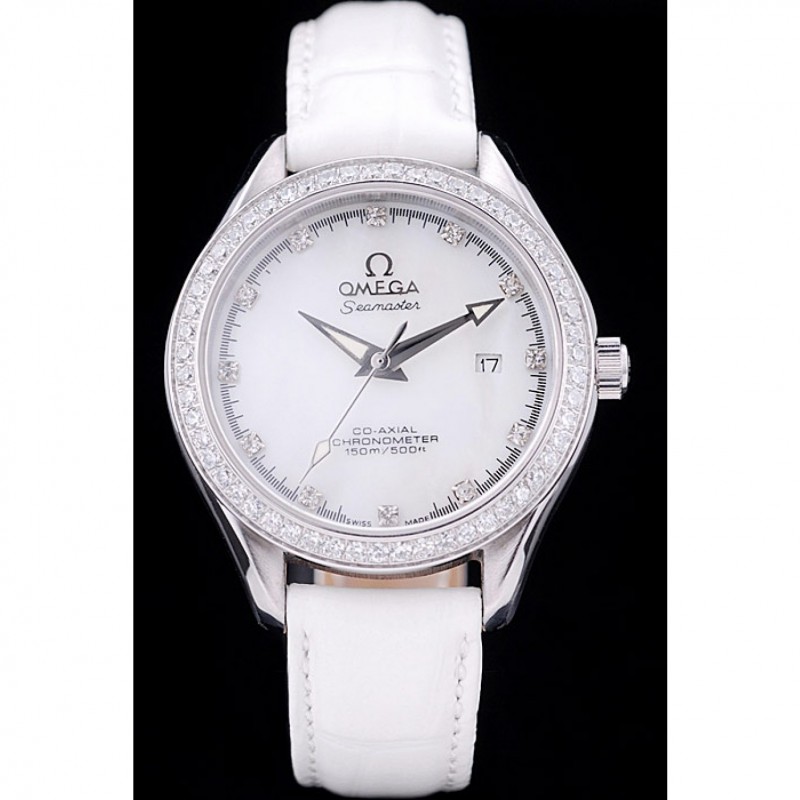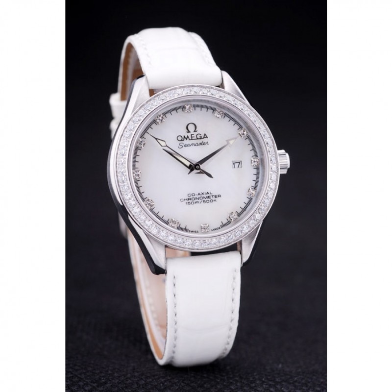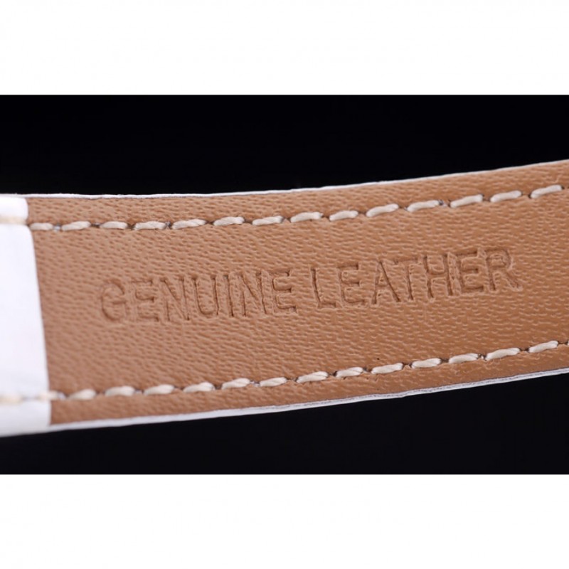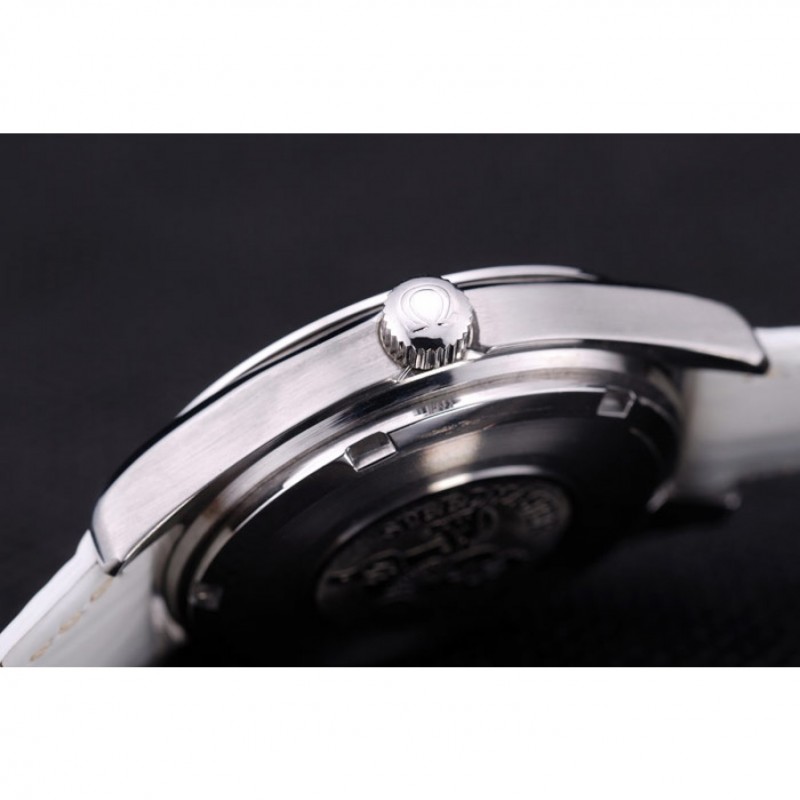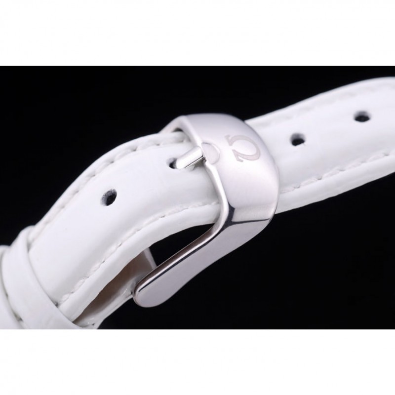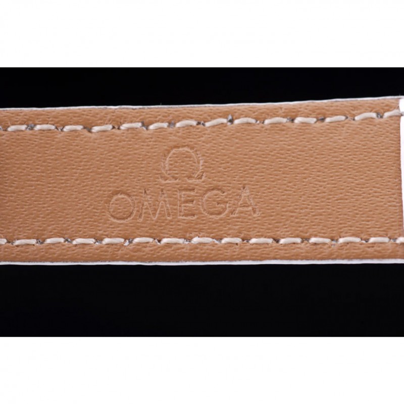 Bracciale: cinturino in pelle di coccodrillo bianco vernice calore Omega in rilievo con Omega inscritto in acciaio inox gancio-fibbia chiusura lucidato