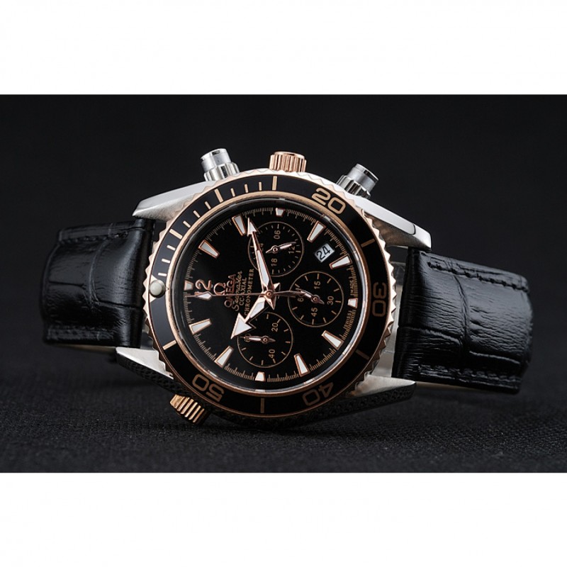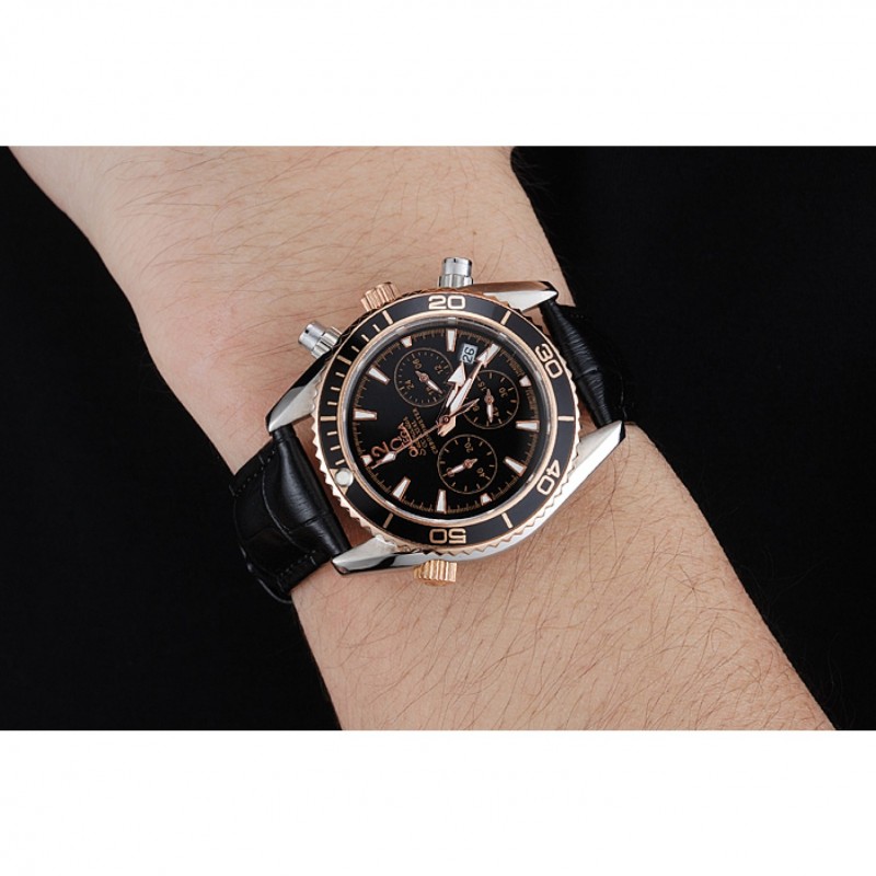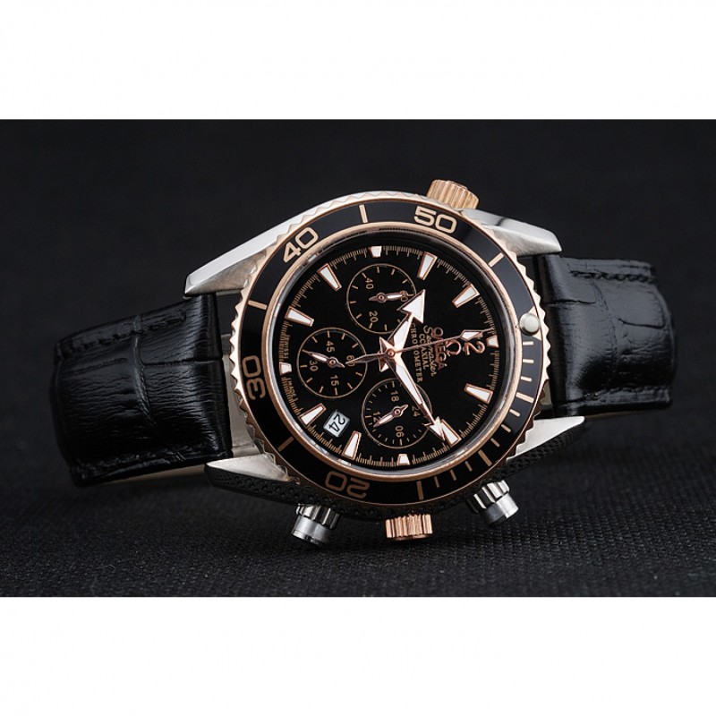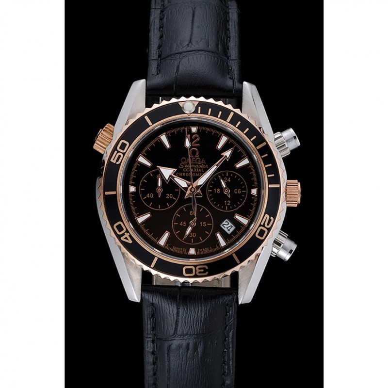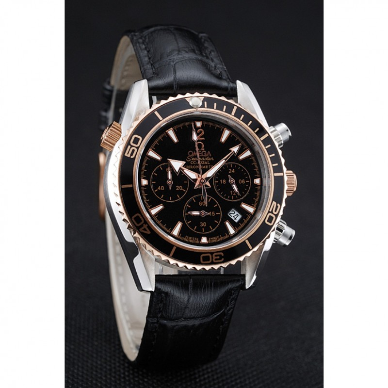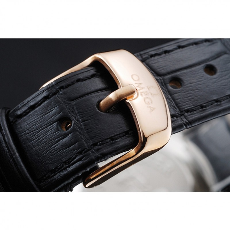 braccialetto: calore Omega impresso cinturino in coccodrillo vernice nera con Omega inscritta placcato 18k oro rosa gancio fibbia chiusura