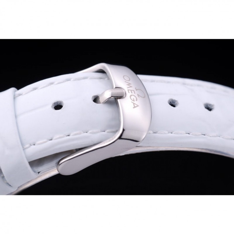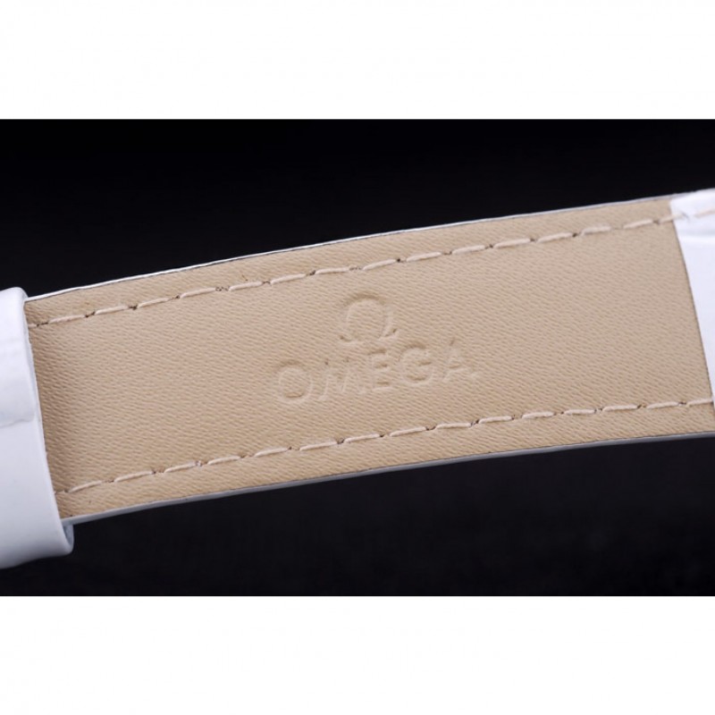 Bracciale: calore Omega impresso cinturino in pelle di coccodrillo bianco vernice con Omega inscritta in acciaio inox gancio-fibbia chiusura lucidato