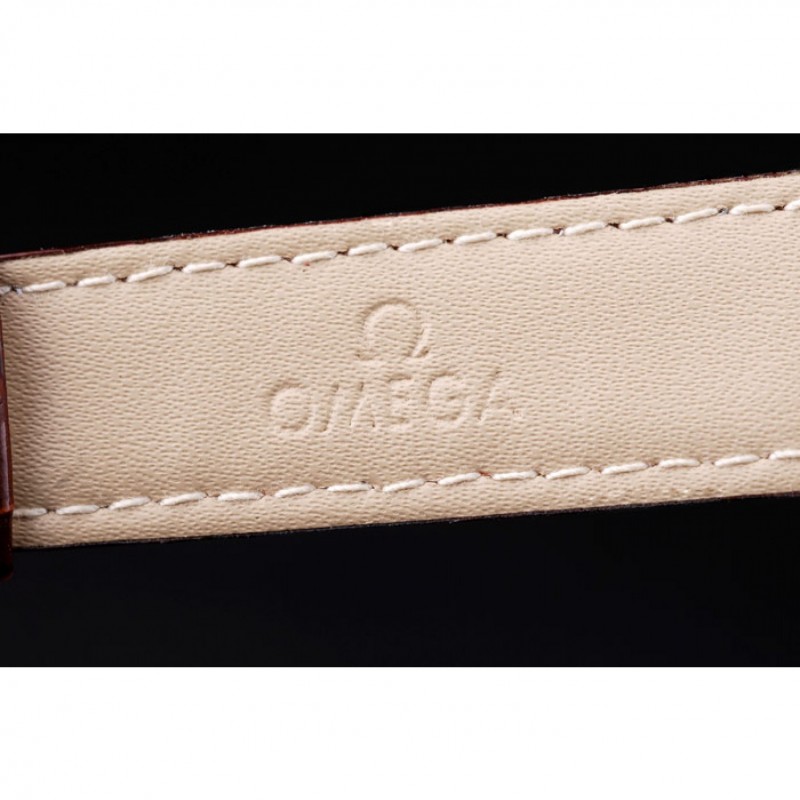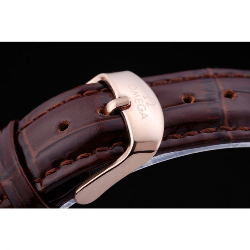 braccialetto: calore Omega impresso cinturino in coccodrillo marrone verniciata con Omega inscritta placcato 18k oro rosa gancio fibbia chiusura