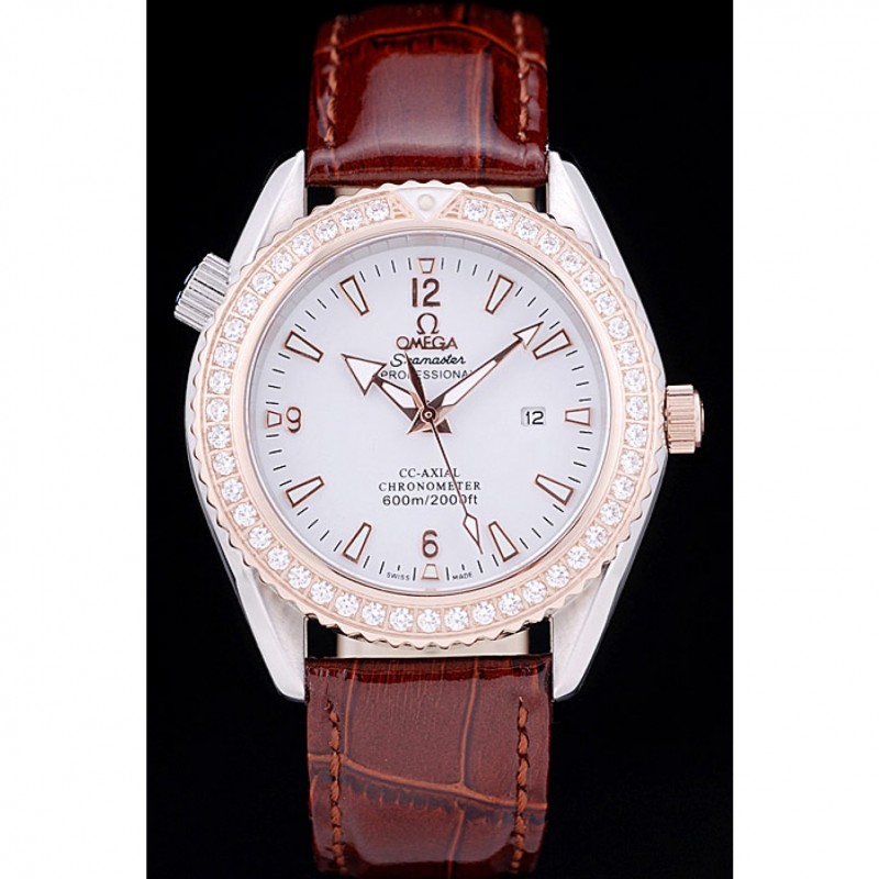 corona: placcato oro rosa 18 carati in oro corona intaglio con Omega logo più una corona intaglio in acciaio inox lucido con logo sul lato opposto