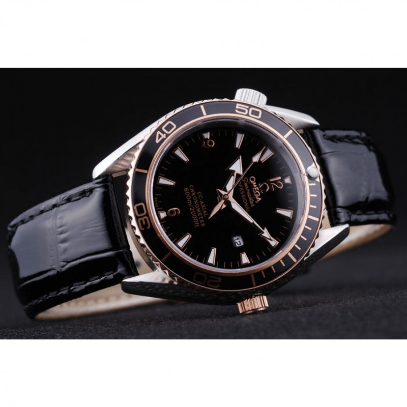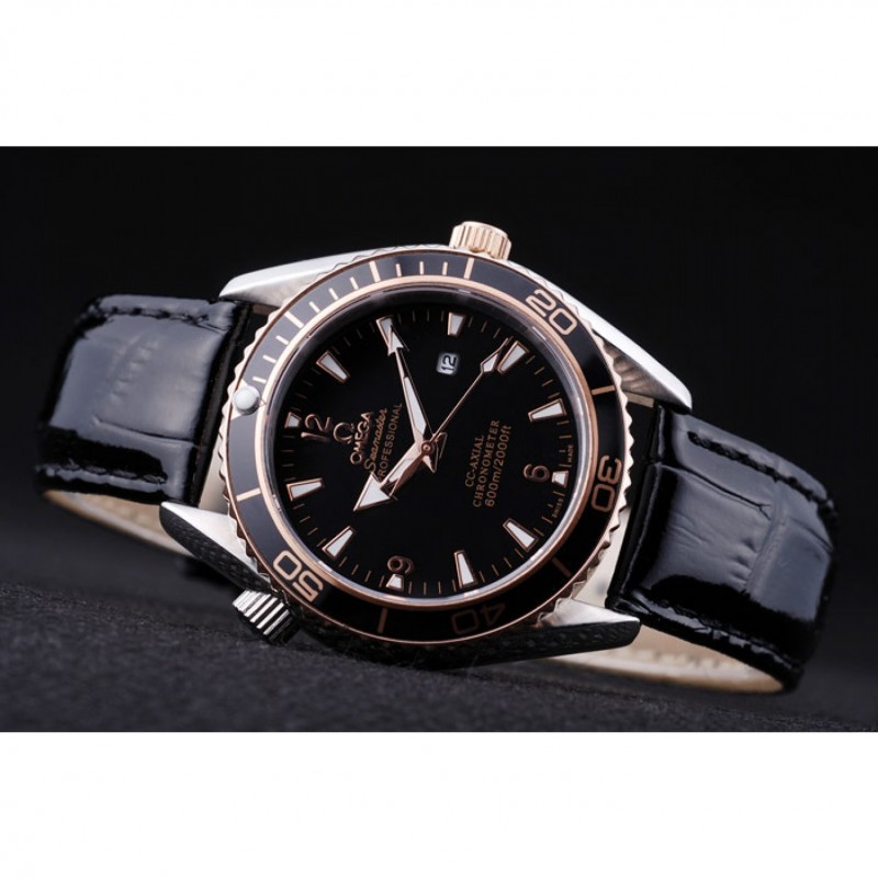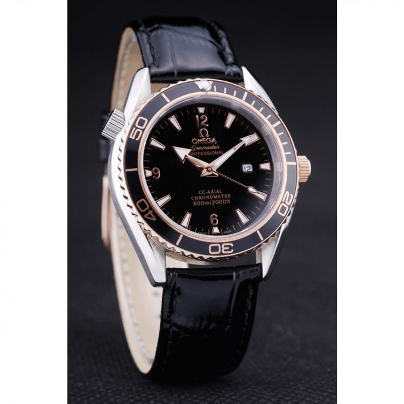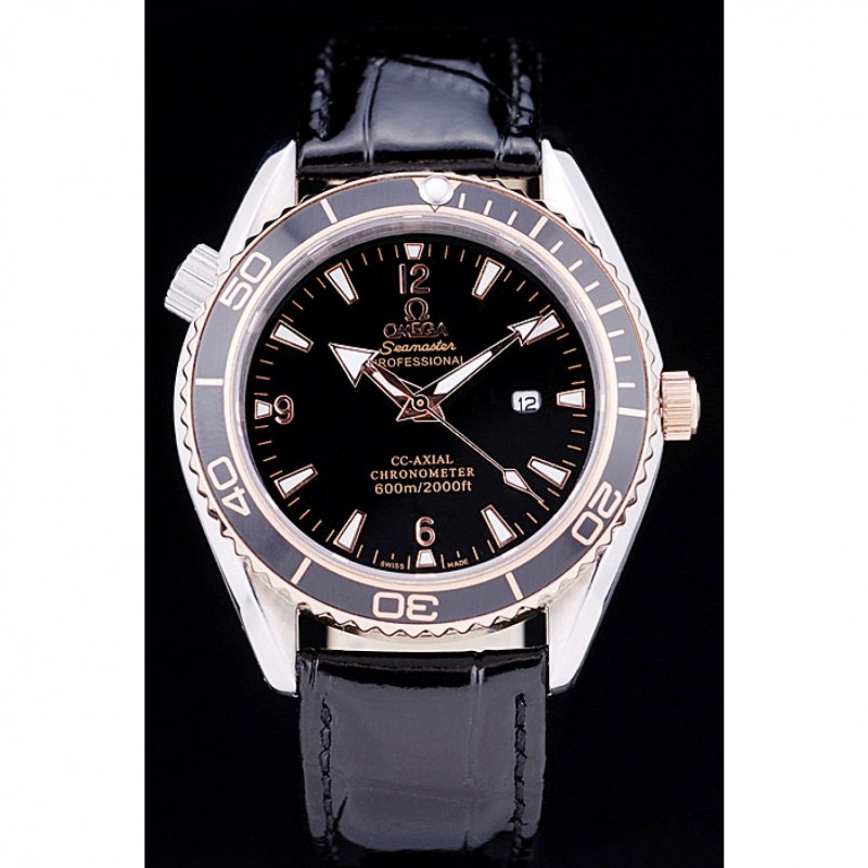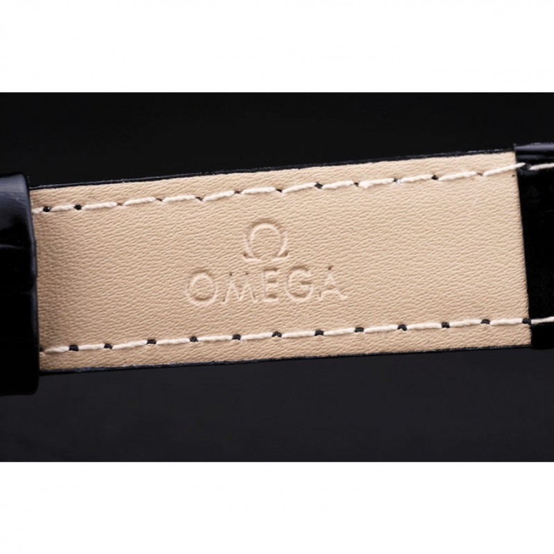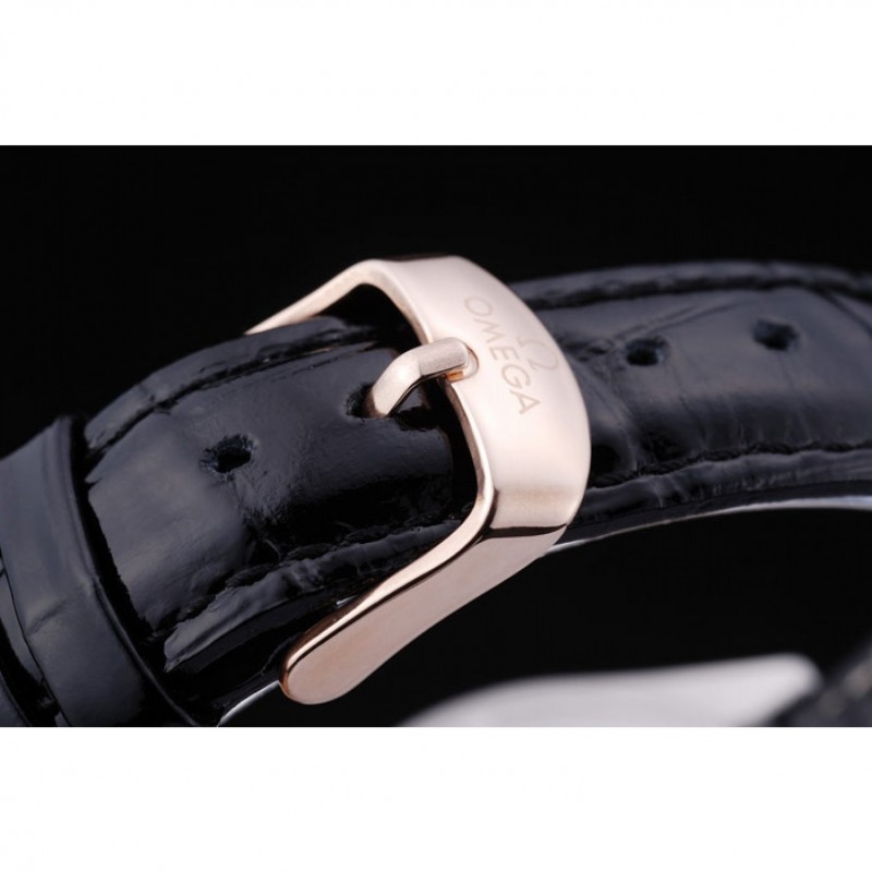braccialetto: calore Omega impresso cinturino in coccodrillo vernice nera con Omega inscritto placcato 18k oro rosa catenaccio del gancio fibbia