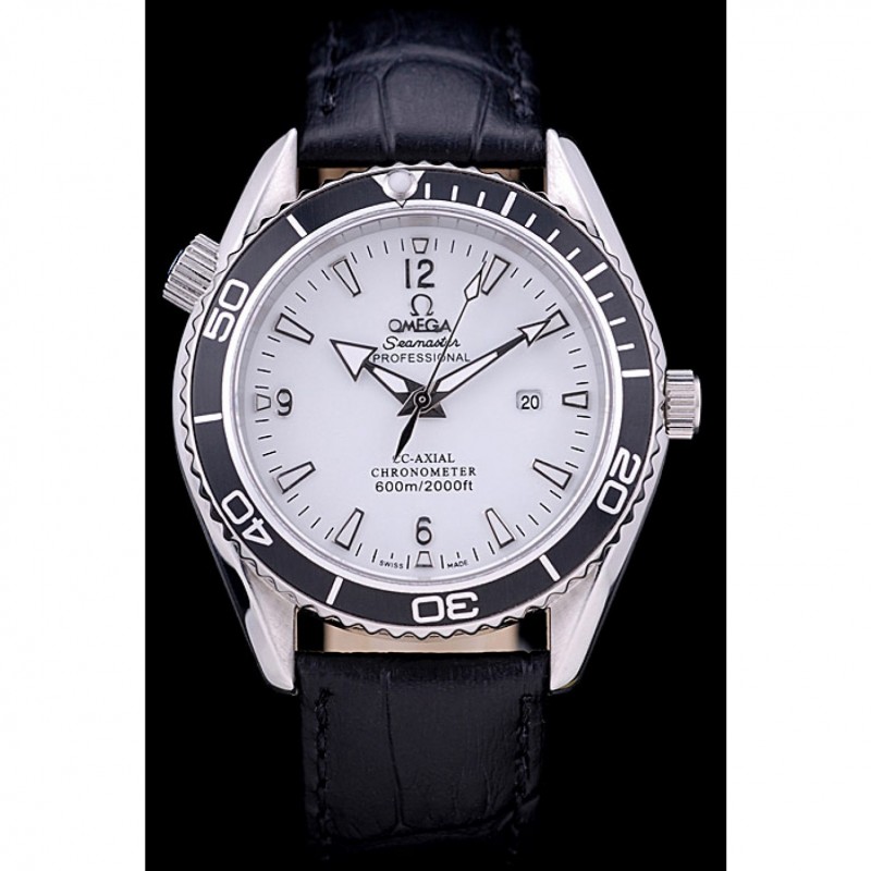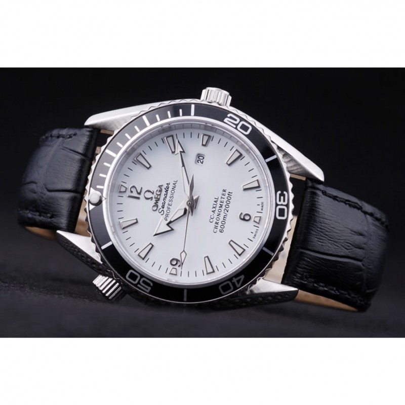 Bracciale: calore Omega impresso cinturino in pelle di coccodrillo in vernice nera con Omega inscritta in acciaio inox catenaccio del gancio-fibbia lucida
