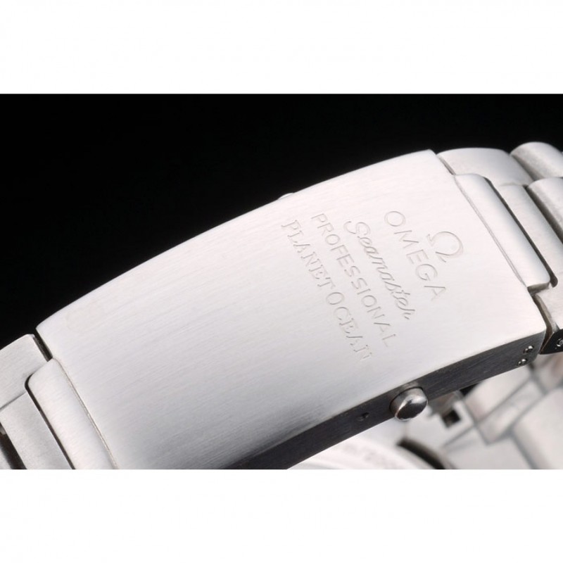 bracciale: bracciale a maglie in acciaio inox spazzolato con logo e Omega Seamaster Professional Planet Ocean inciso fibbia di distribuzione