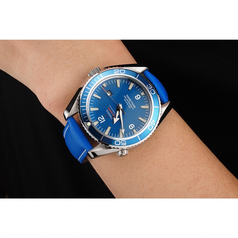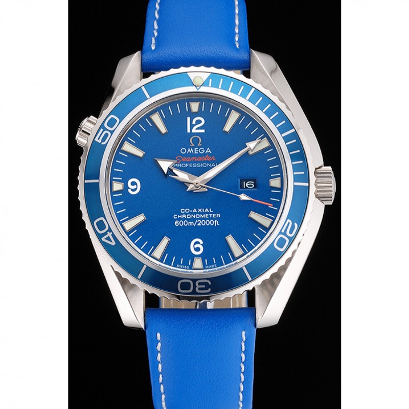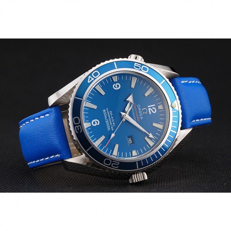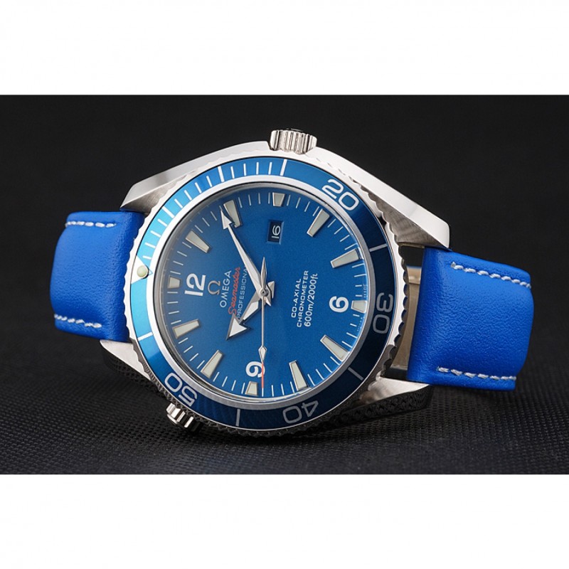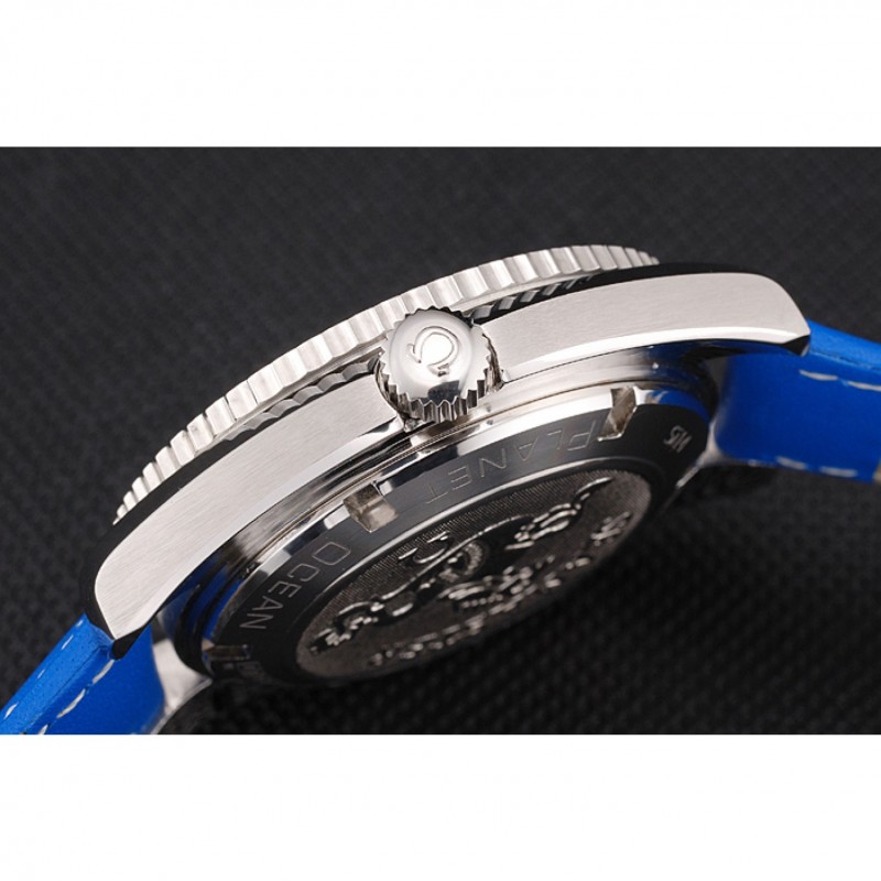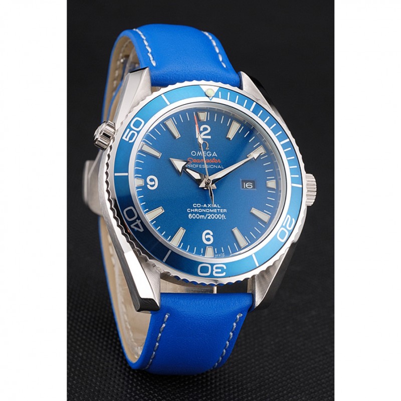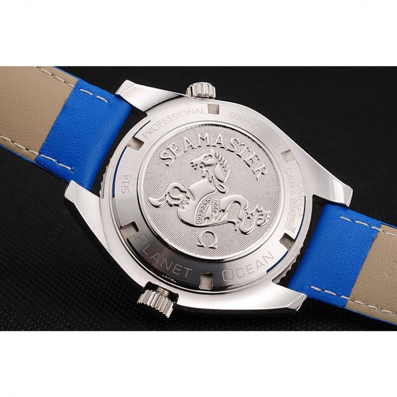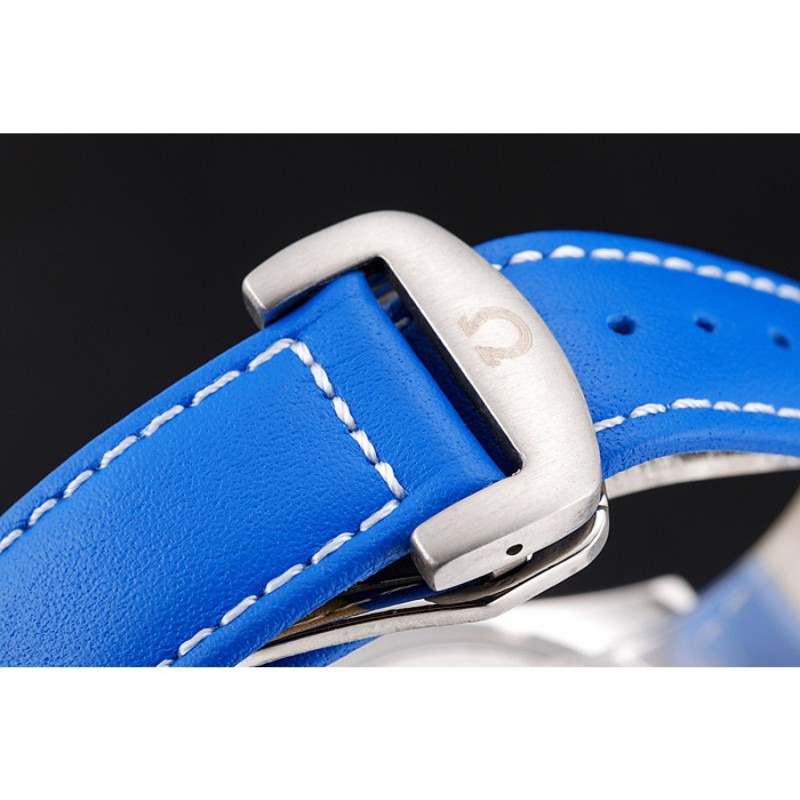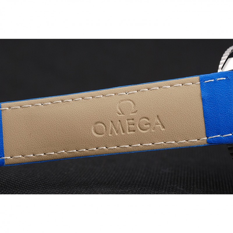 Bracciale: logo e Omega di calore rilievo cinturino in pelle blu con logo inciso chiusura gancio in acciaio inox lucidato