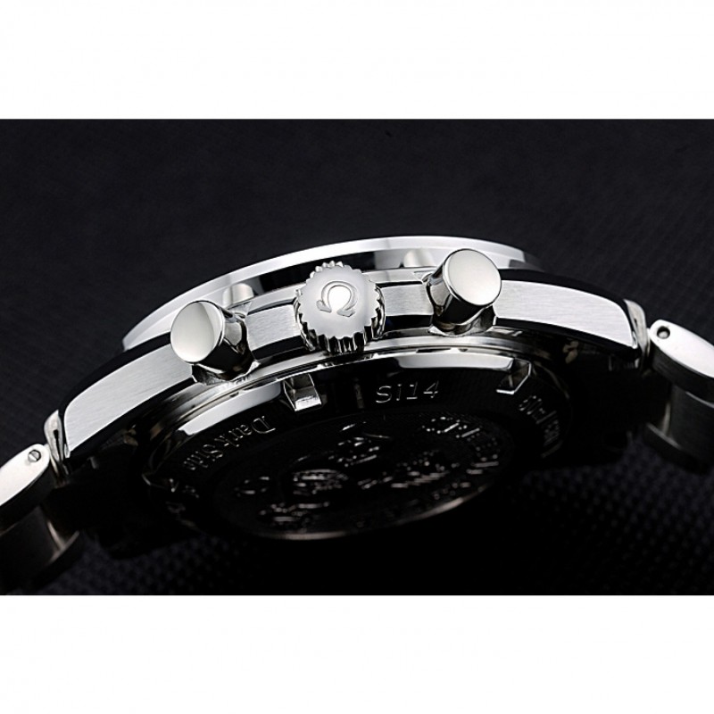 Corona : Omega logo inciso lucido corona intaglio in acciaio inox con un giro pulsante della corona su entrambi i lati di esso