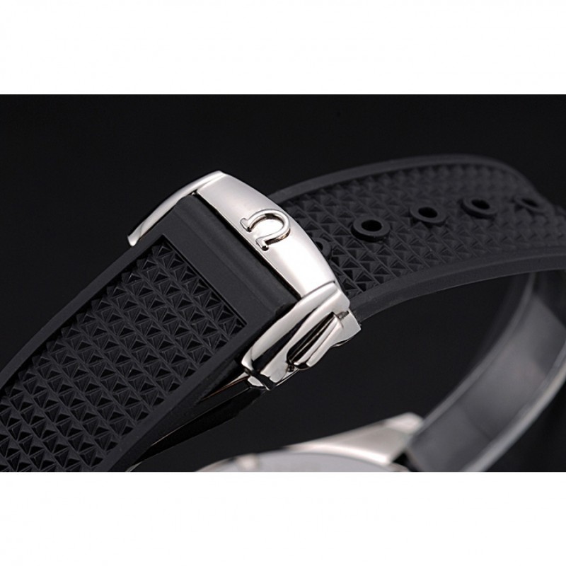 Bracciale: Omega e il logo di calore in rilievo cinturino in pelle martellata nera con logo inciso gancio chiusura push-rilascio acciaio inox lucido