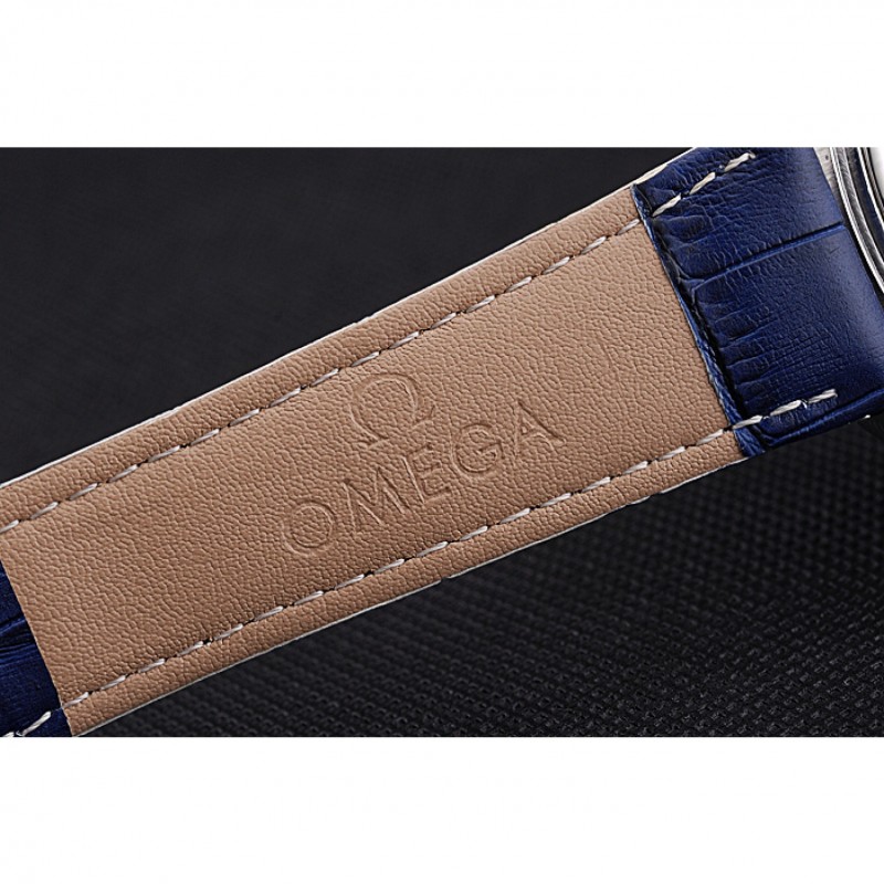 Bracciale: Omega e il logo di calore in rilievo blu cinturino in pelle di coccodrillo con logo inciso chiusura gancio in acciaio inox spazzolato