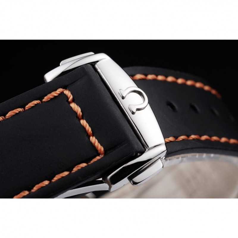 Bracciale: Orange cucito cinturino in pelle nera con il calore in rilievo Omega timbro e acciaio inox lucido fold-in chiusura con Omega logo sulla parte superiore