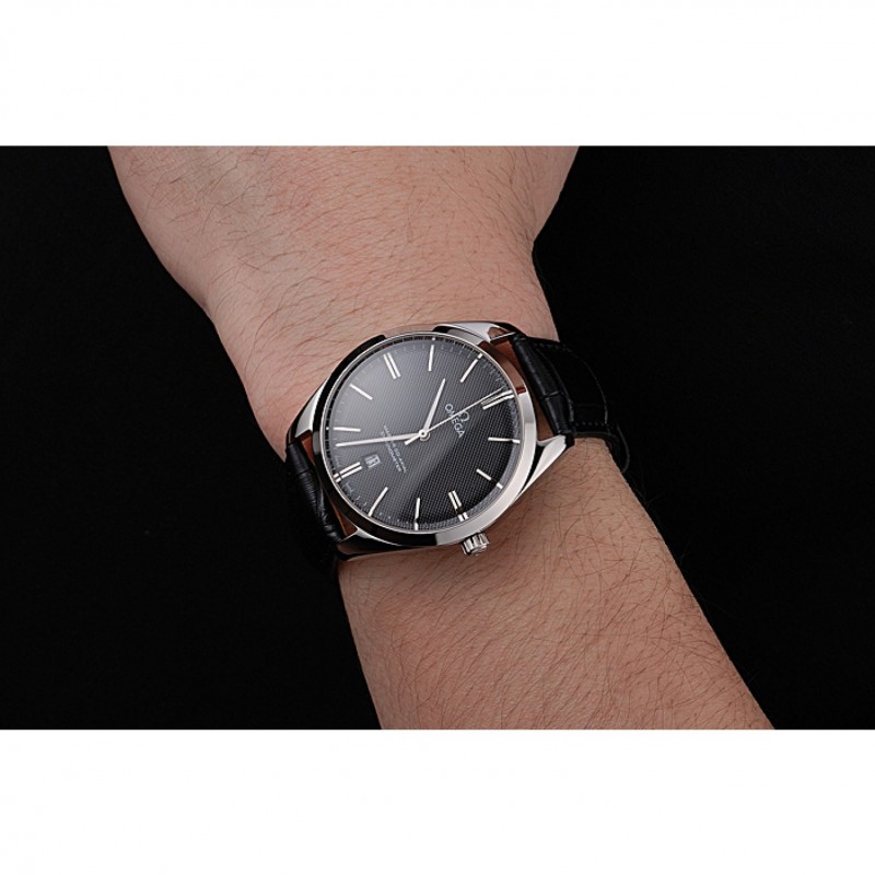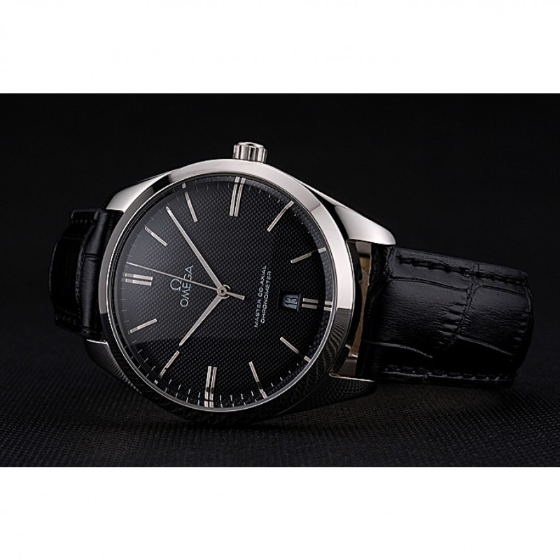 Omega Tresor Maestro Co-Axial quadrante nero Cassa in acciaio nero cinturino in pelle
