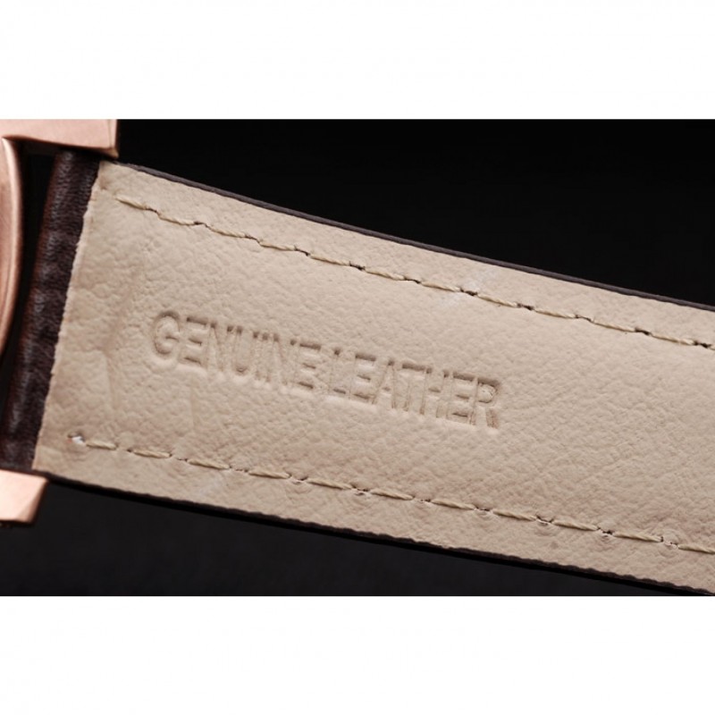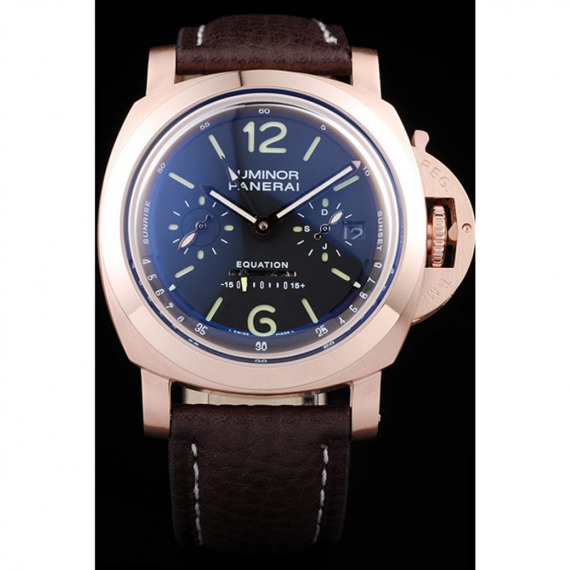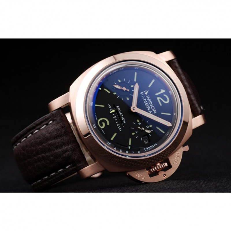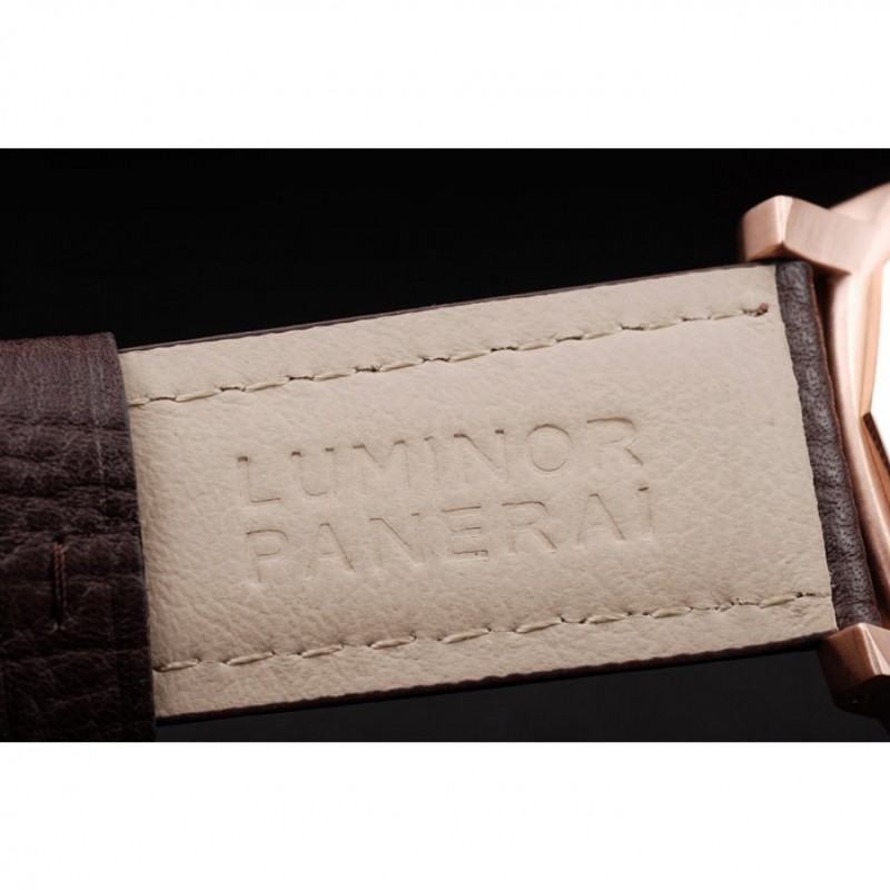 braccialetto: cinturino in pelle marrone con cuciture bianche e calore goffrato Panerai Luminor timbro e 18k oro rosa placcato catenaccio del gancio fibbia con incisione Panerai