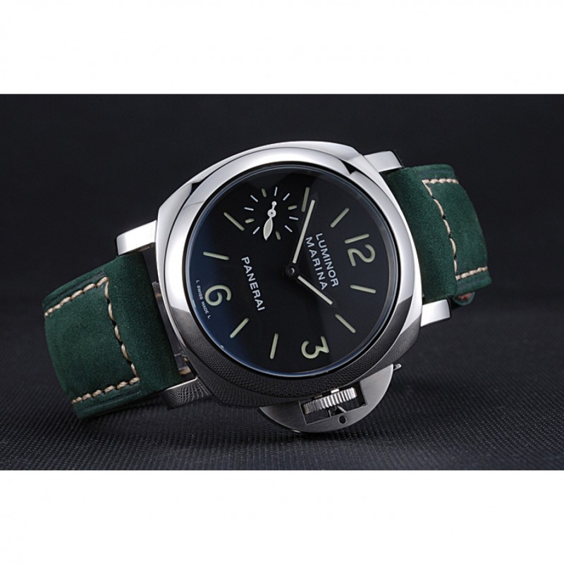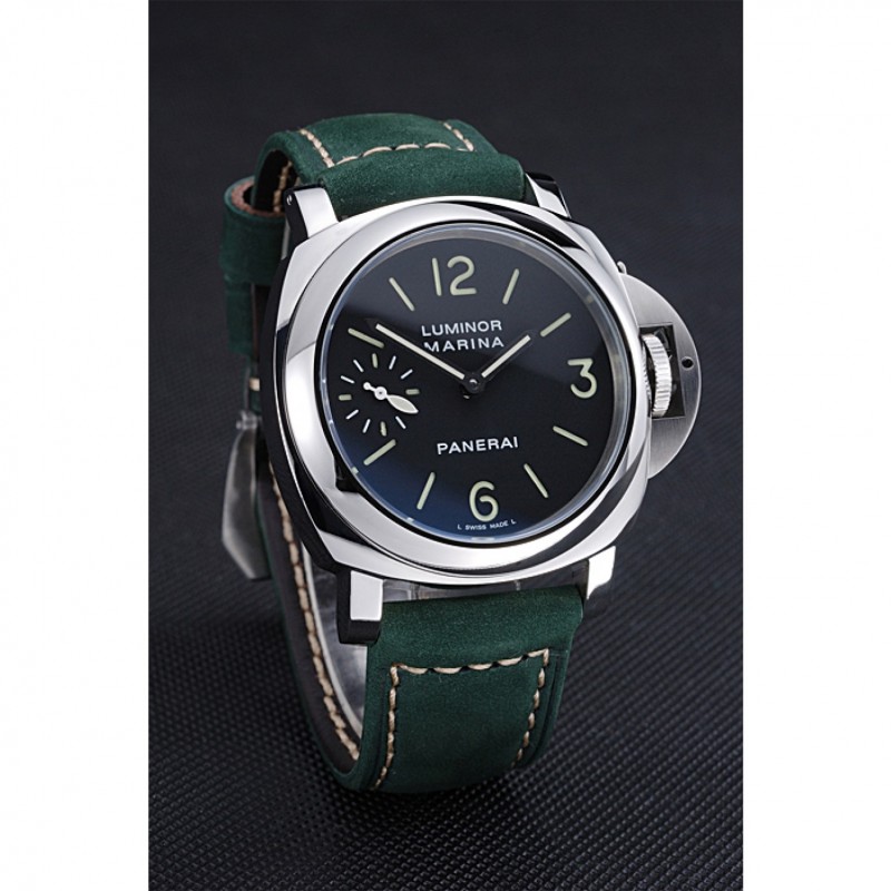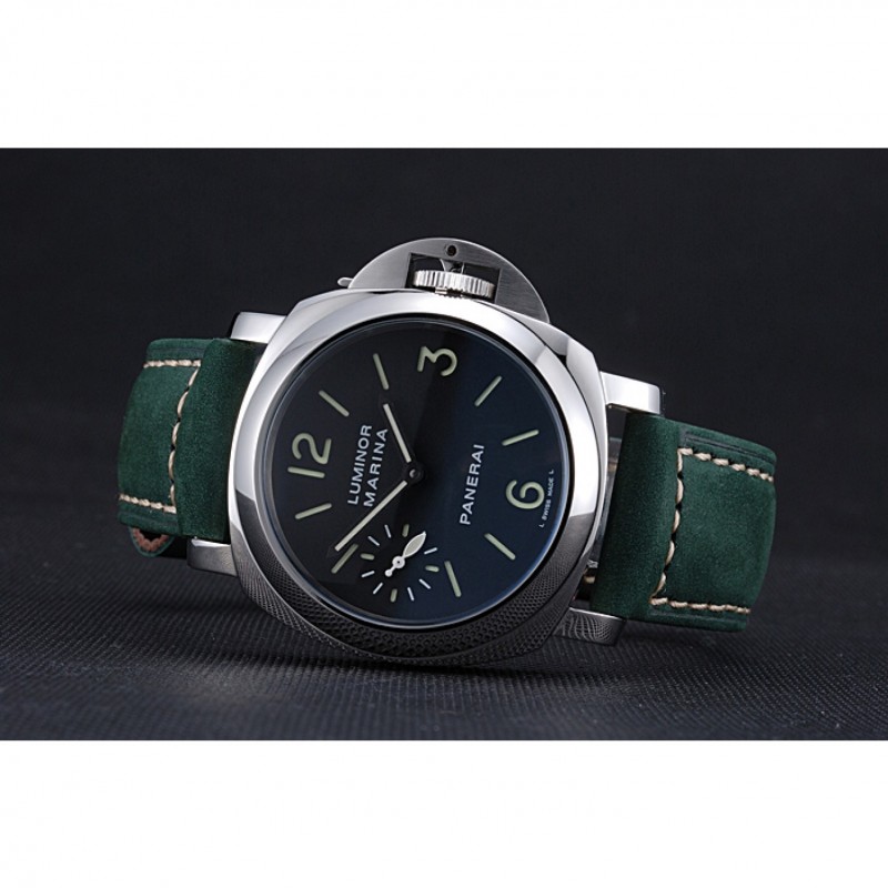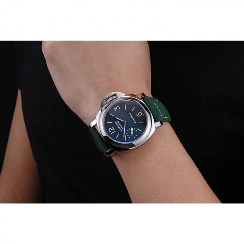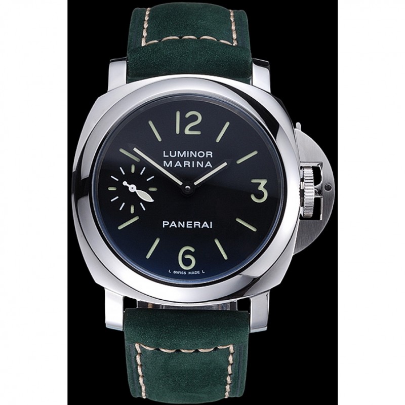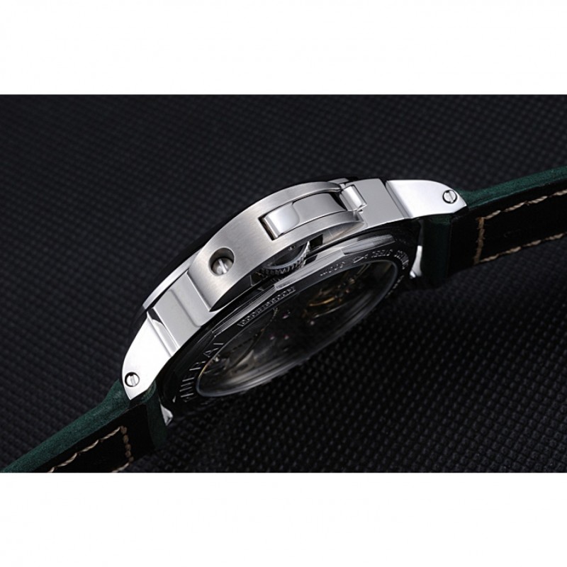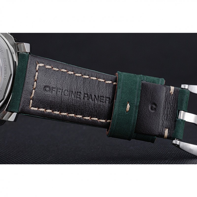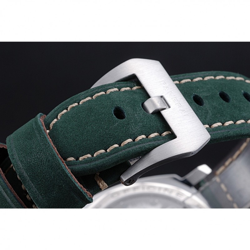 braccialetto: Officine Panerai Italia calore impresso cinturino in pelle scamosciata verde con cuciture bianche filo e Panerai incisi acciaio inossidabile spazzolato catenaccio del gancio fibbia
