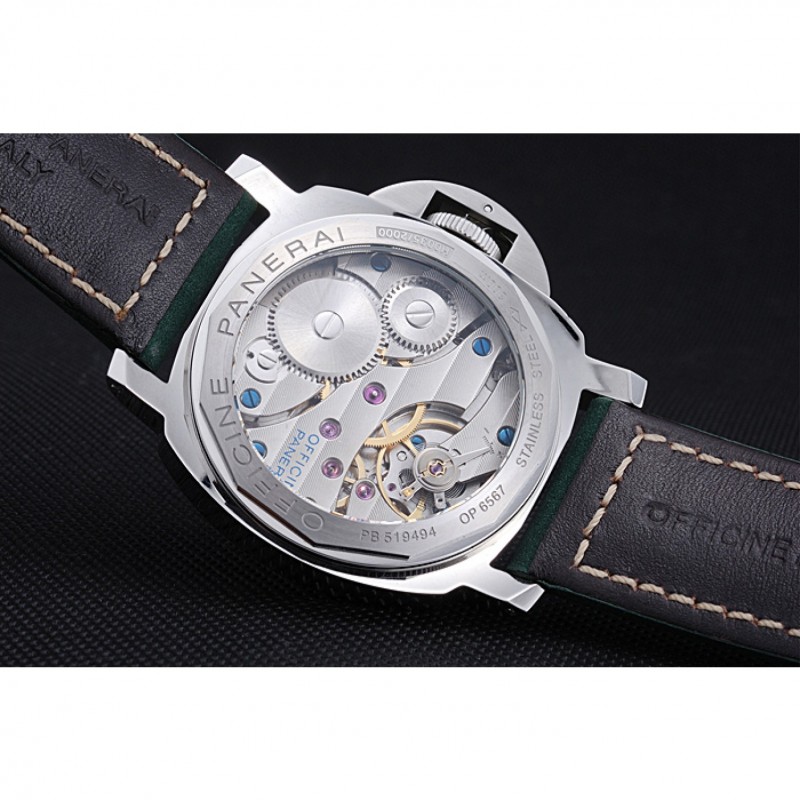 Torna: lo snap-in acciaio inox spazzolato indietro con la meccanica rivelando center e incisioni Officine Panerai