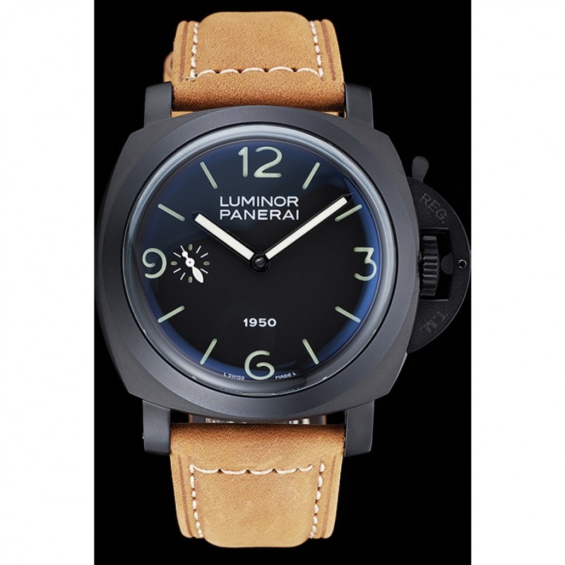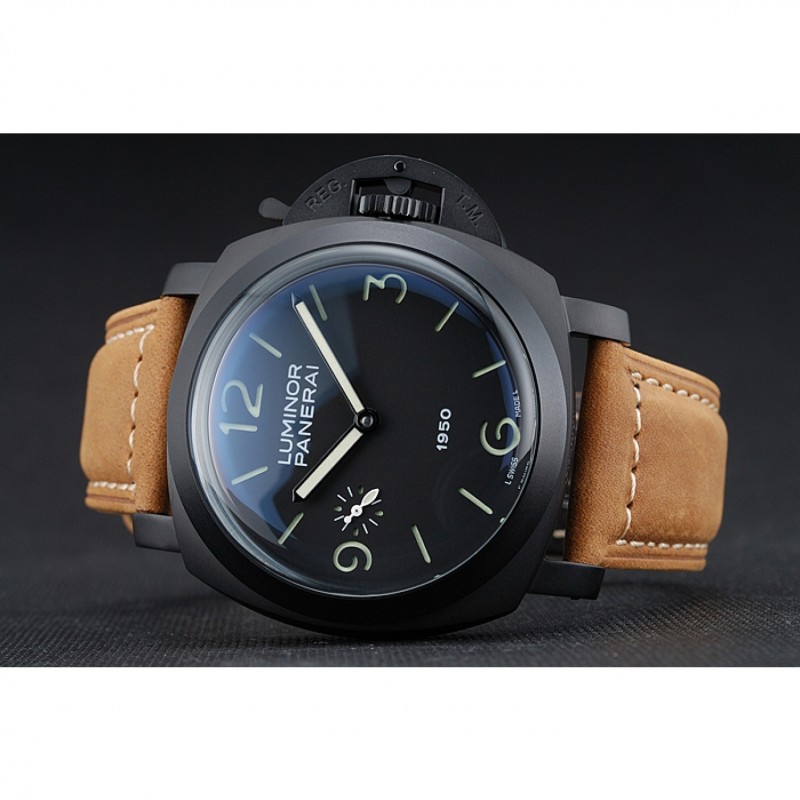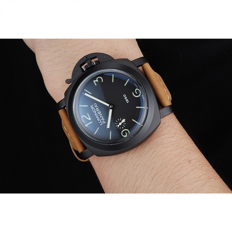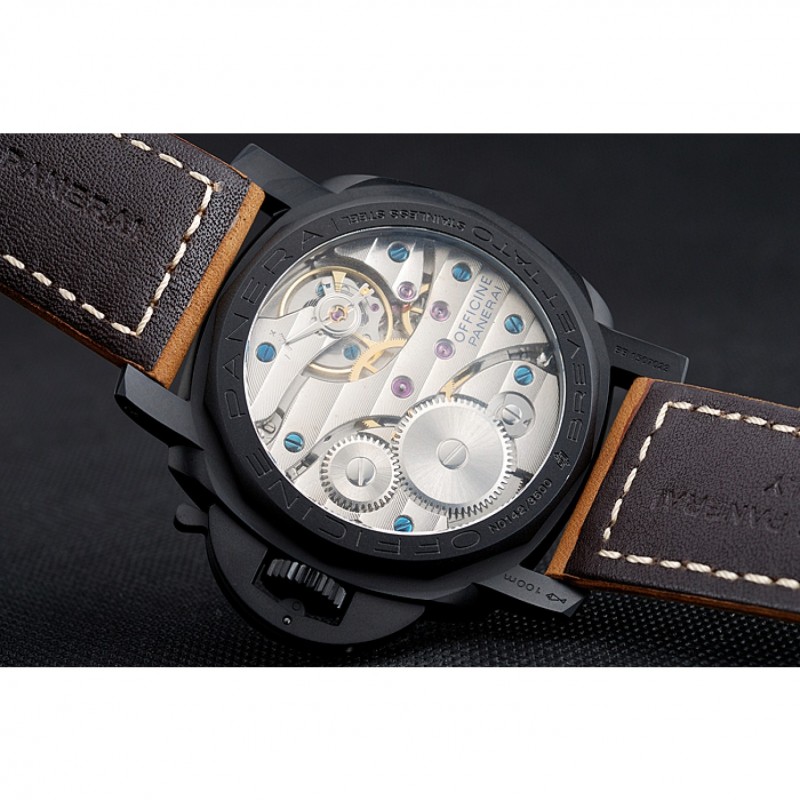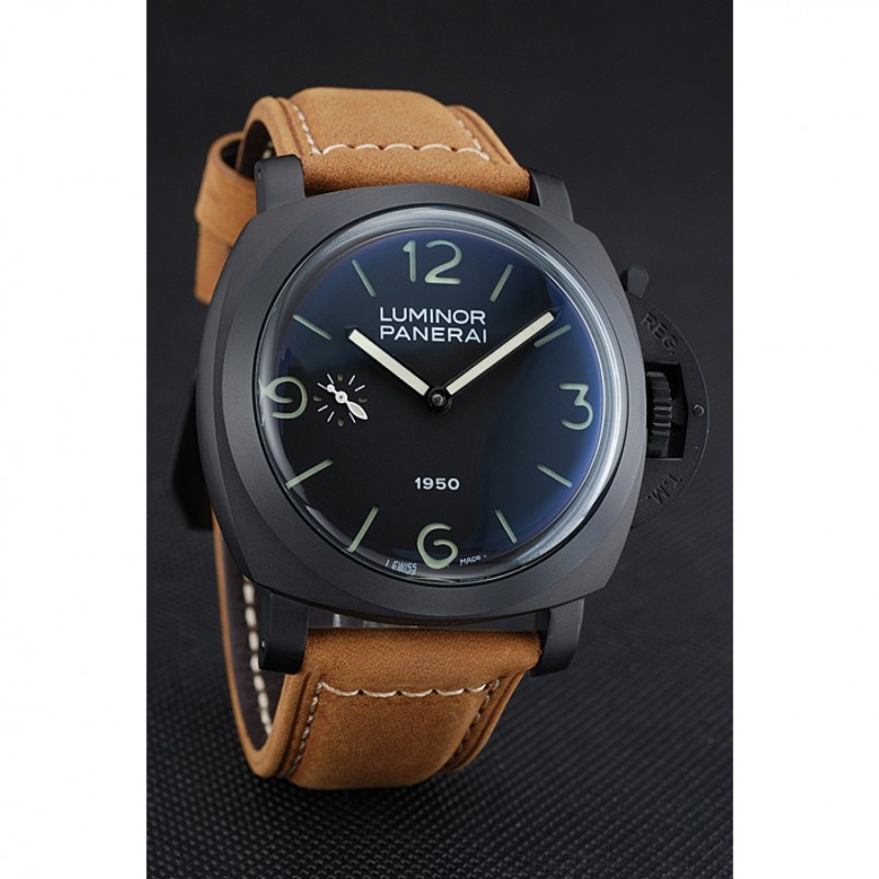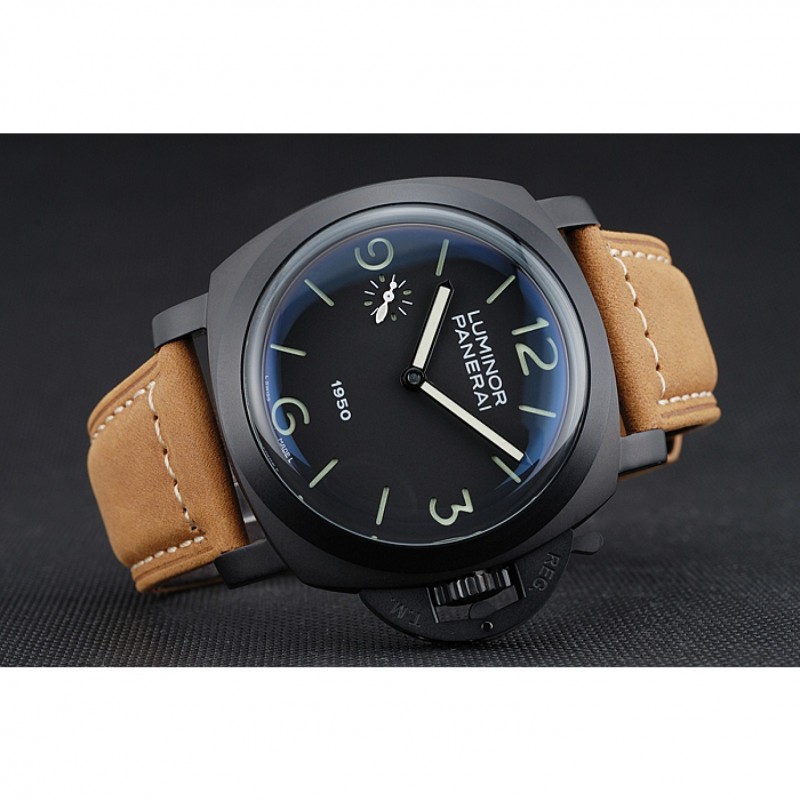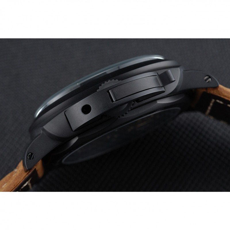 Panerai Luminor Nero ionizzata Cassa in acciaio quadrante nero Brown Suede cinturino in pelle