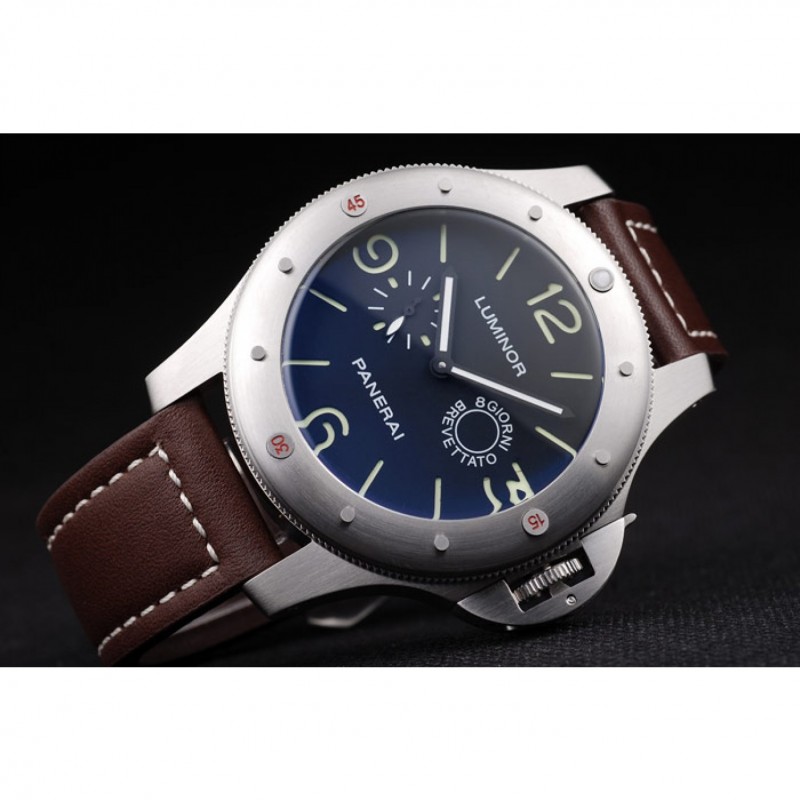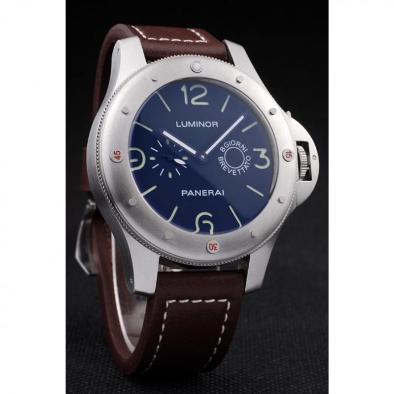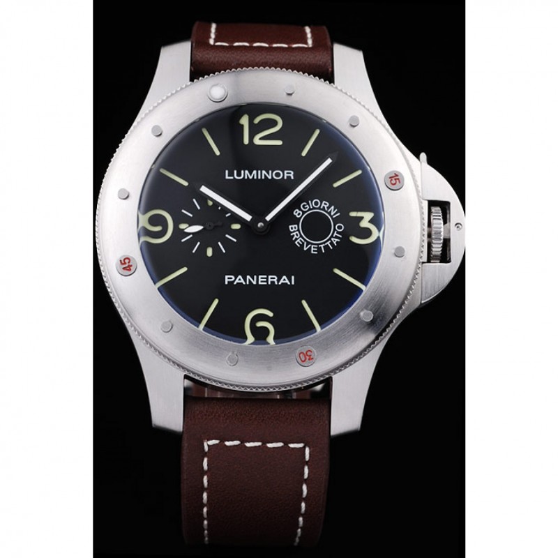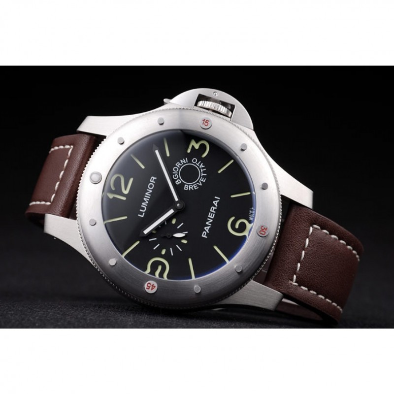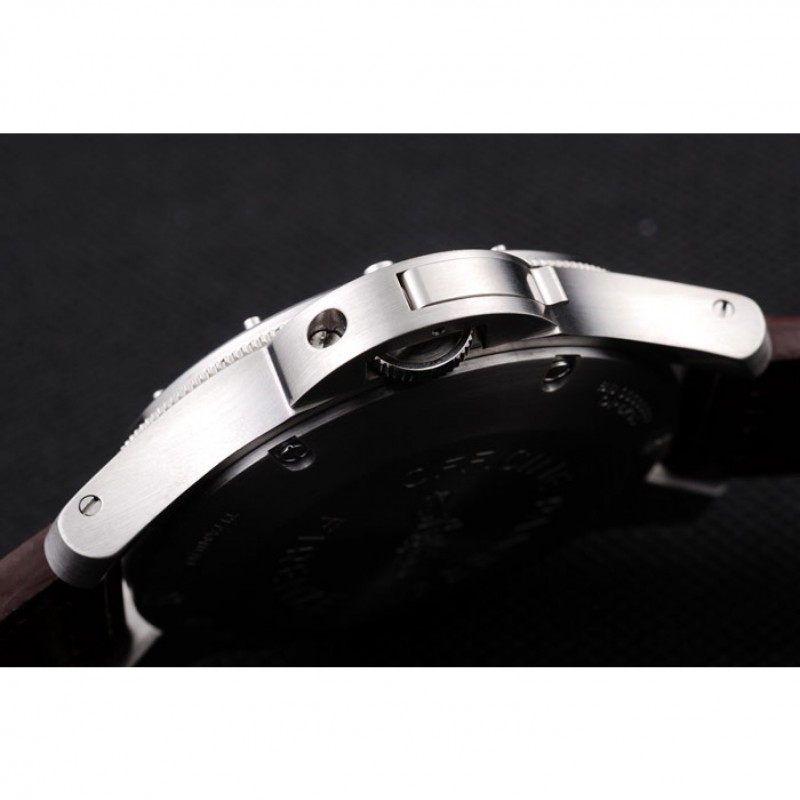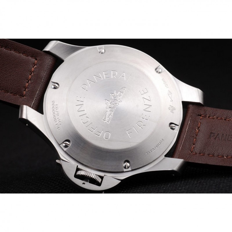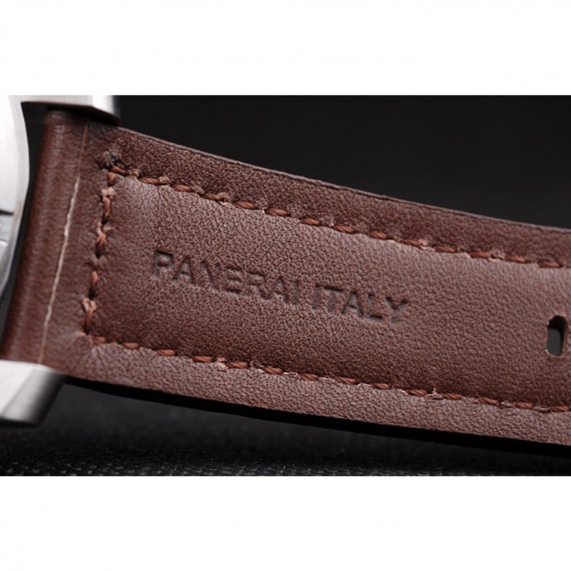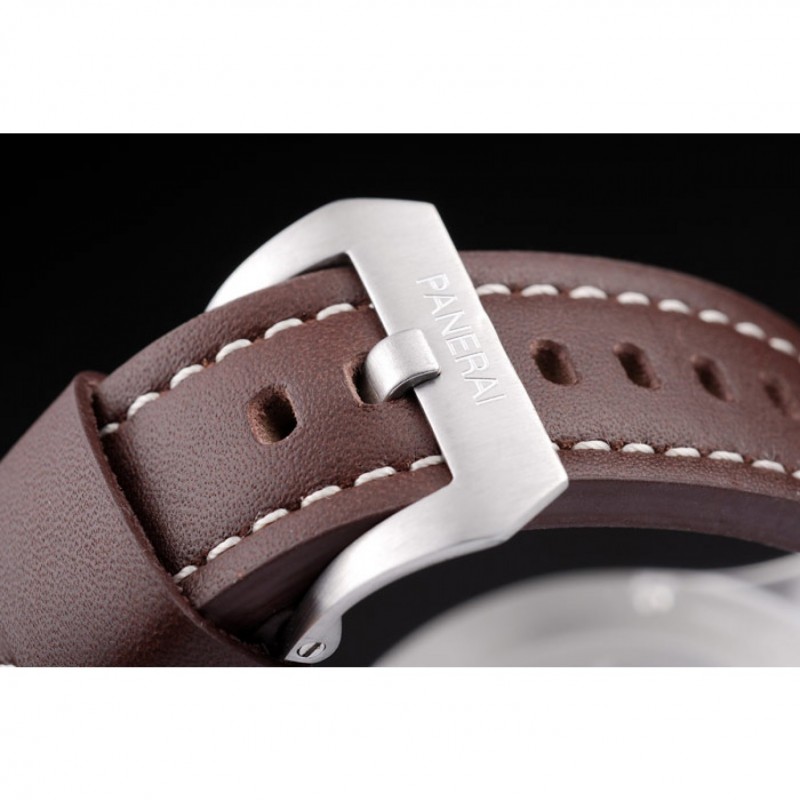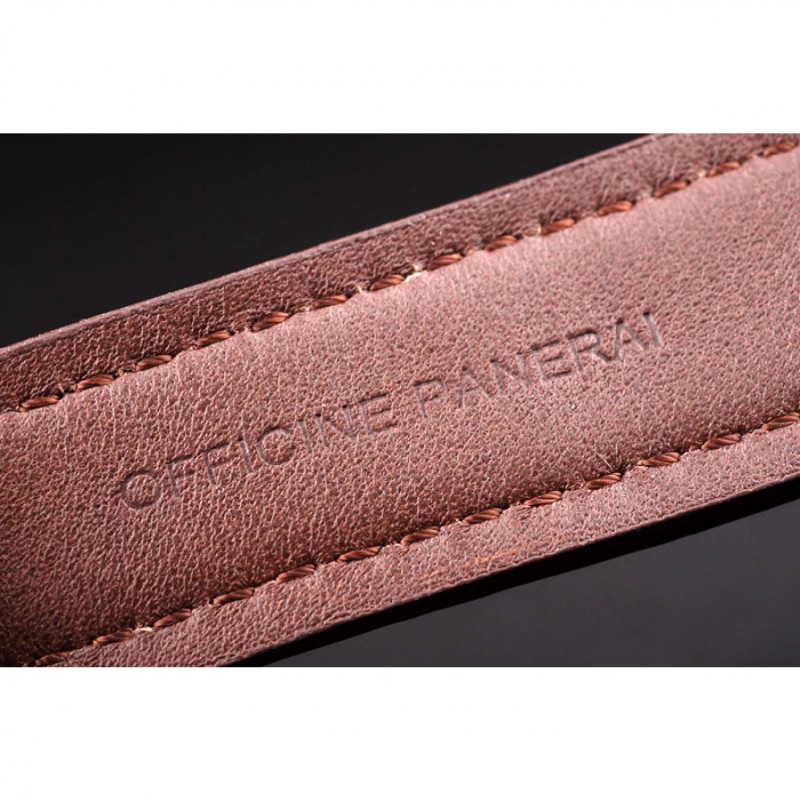 braccialetto: cinturino in pelle marrone con il calore in rilievo Officine Panerai Italia timbro e acciaio inox satinato chiusura del gancio-fibbia con incisione Panerai