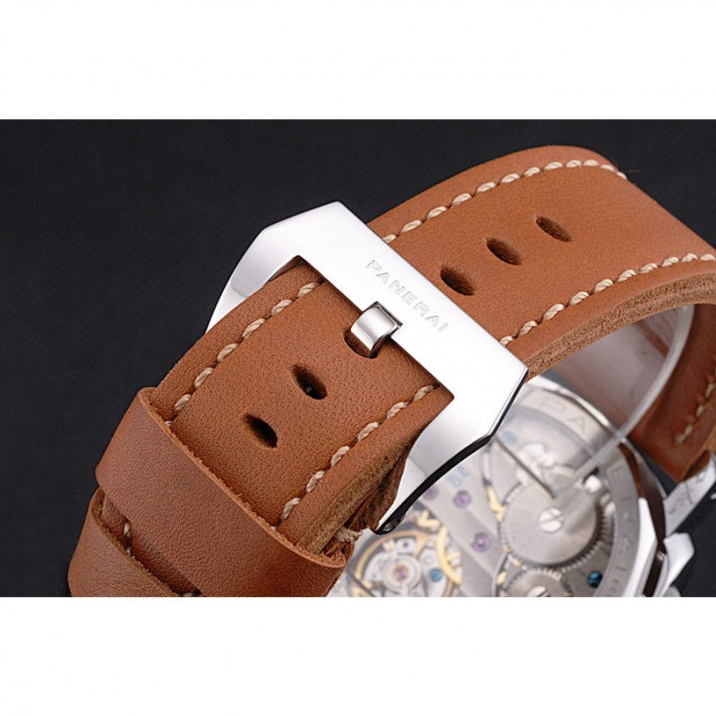 braccialetto: cinturino in pelle marrone con cuciture bianche e il calore in rilievo Officine Panerai Italia timbro e spazzolato chiusura del gancio-fibbia in acciaio inossidabile con incisione Panerai