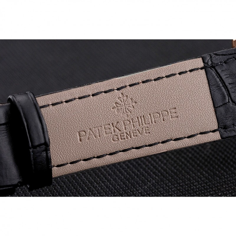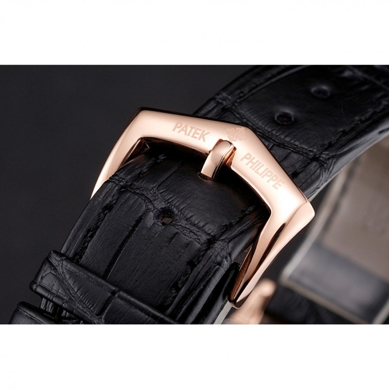 Bracciale: logo e calore Patek Philippe in rilievo cinturino in pelle di coccodrillo marrone con logo e Patek Philippe incisi placcato oro rosa 18 carati in oro catenaccio del gancio-fibbia