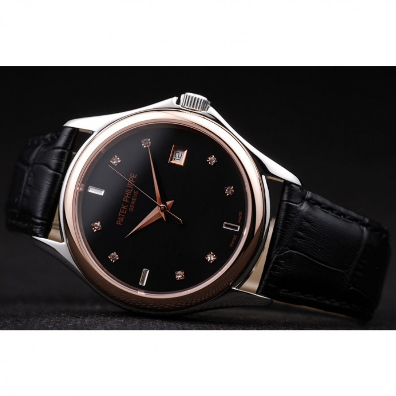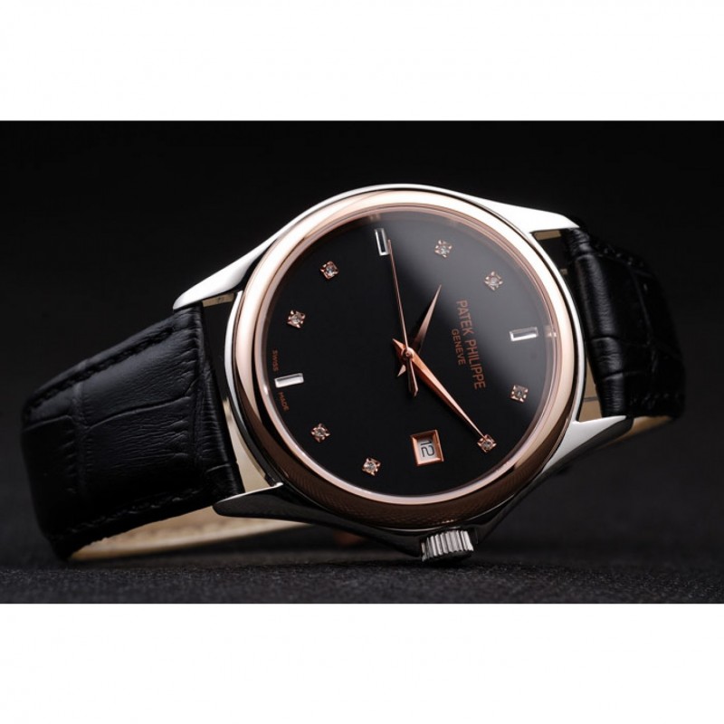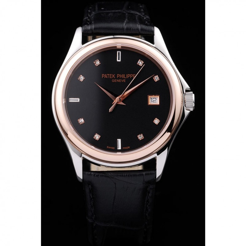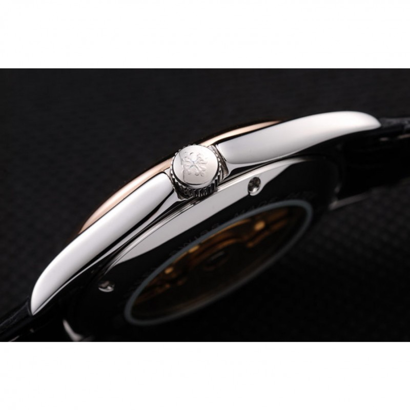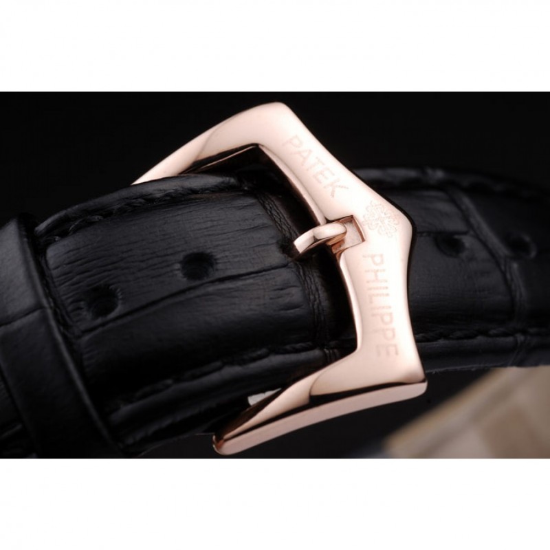 Bracciale: Black coccodrillo cinturino in pelle con il calore goffrato Patek Philippe bollo e 18k rosa-oro placcato catenaccio del gancio-fibbia con Patek Philippe incisione