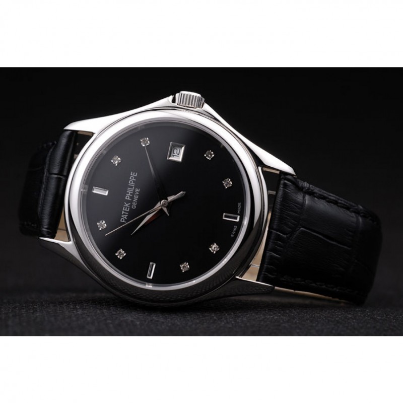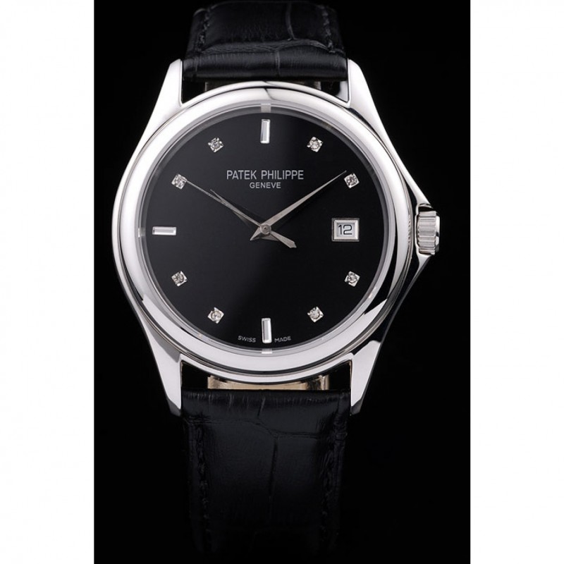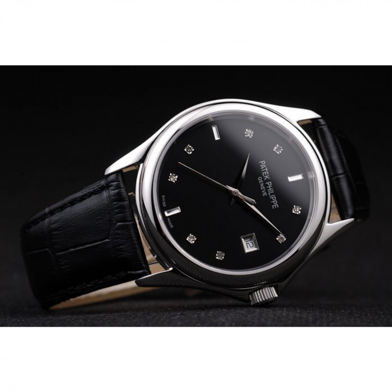1 recensione per Patek Philippe Calatrava Geneve cristallo Studded ore Marker quadrante nero in pelle nera 98170 Strap