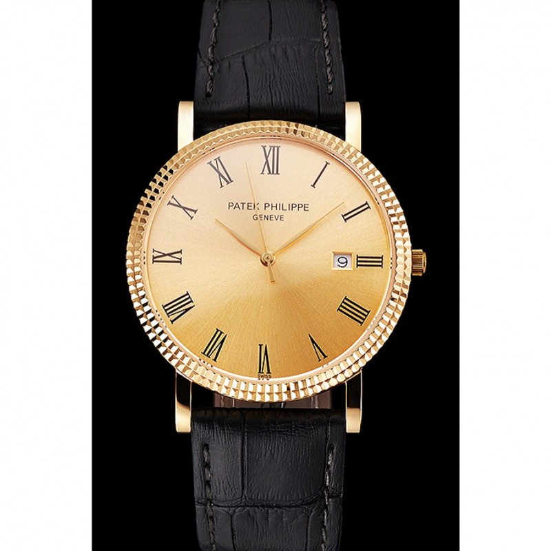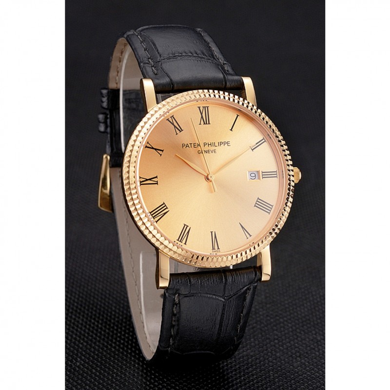 Bracciale: logo e Patek Philippe calore rilievo cinturino in pelle di coccodrillo nera con logo e Patek Philippe inciso placcato oro giallo 18k chiusura del gancio-fibbia