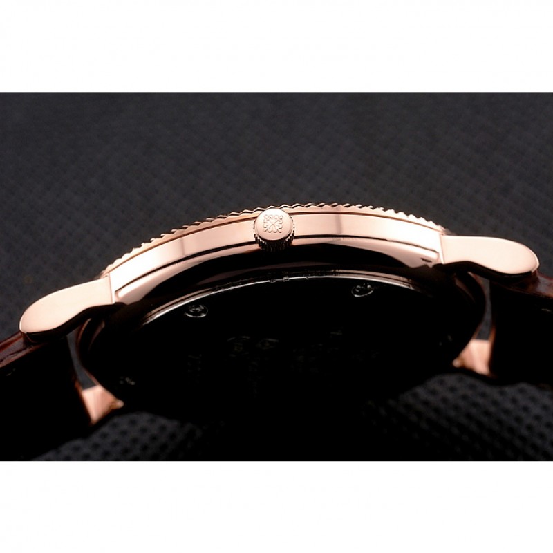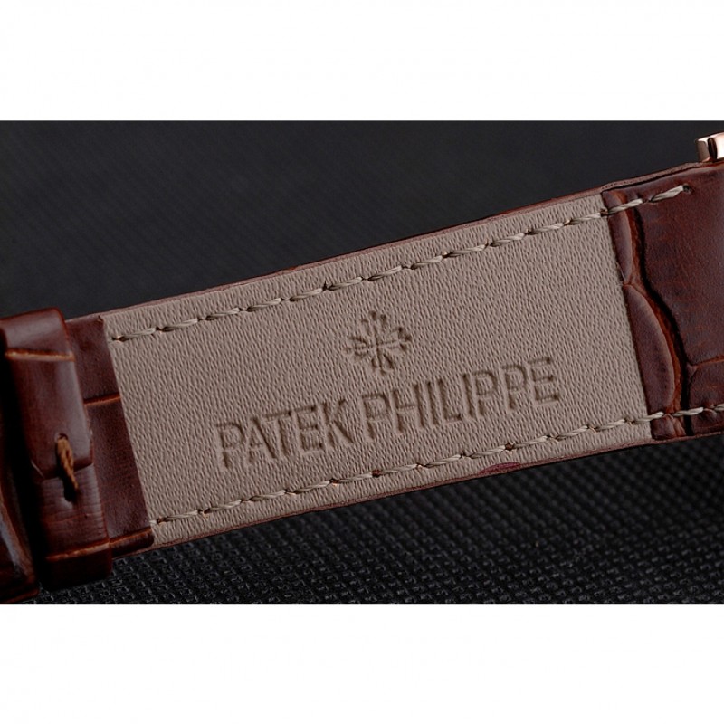 Bracciale: logo e Patek Philippe di calore in rilievo cinturino in pelle di coccodrillo marrone con logo e Patek Philippe inciso rosa 18 carati in oro placcato hook-fibbia chiusura