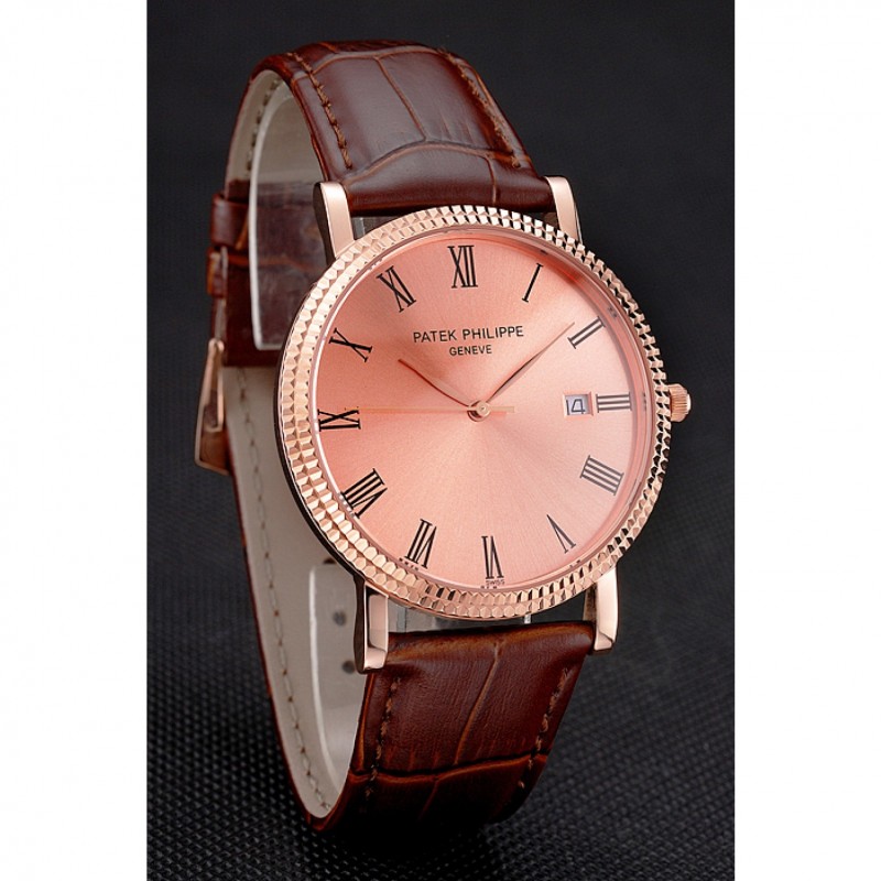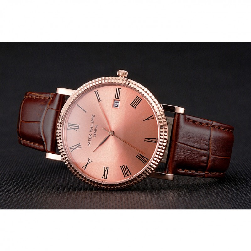 Recensisci per primo “Patek Philippe Calatrava Oro Rosa Quadrante numeri romani a coste Lunetta cassa in oro rosa cinturino in pelle marrone”