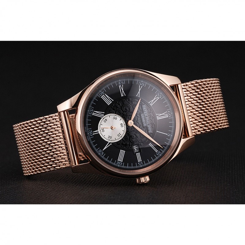 Patek Philippe Calatrava piccoli secondi nero inciso Quadrante Rosa cassa e bracciale in oro