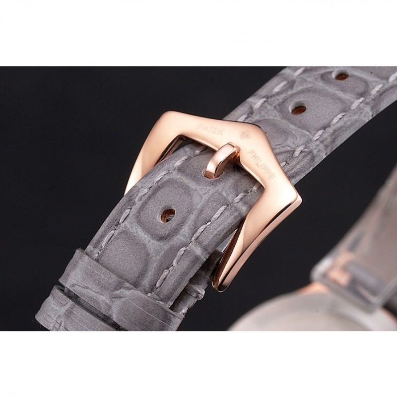 Bracciale: Patek Philippe e calore logo in rilievo cinturino in pelle di coccodrillo grigio con Patek Philippe e il logo 18k inscritto in oro rosa placcato catenaccio del gancio-fibbia