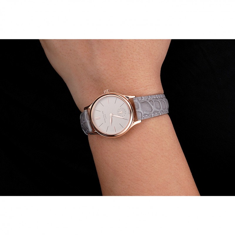 Recensisci per primo “Patek Philippe Calatrava quadrante grigio cassa in oro rosa Cinturino in pelle grigia”