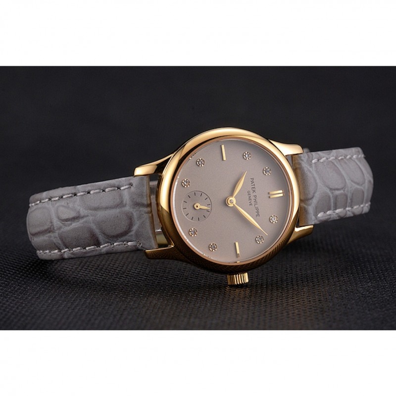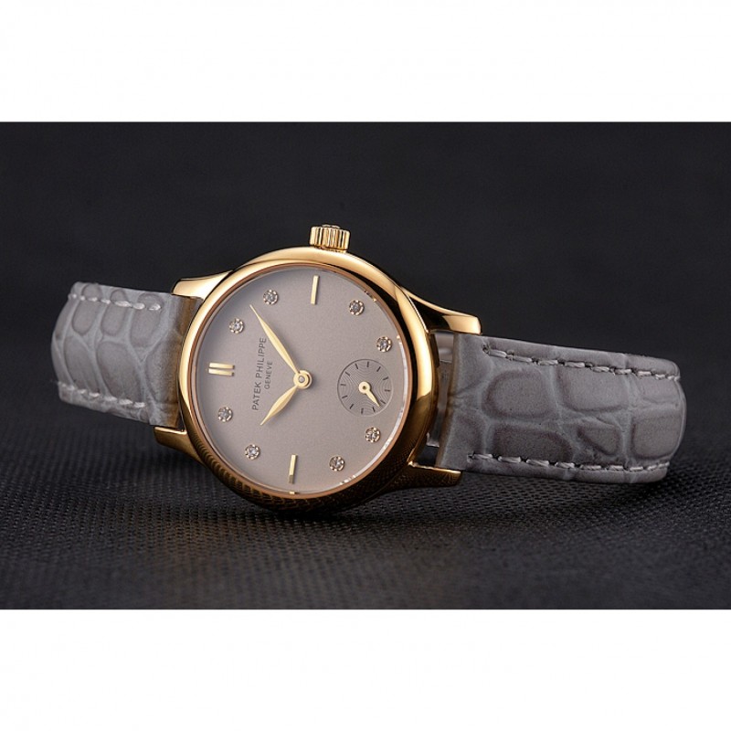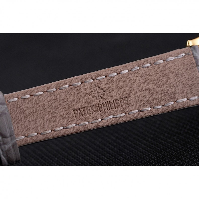 Bracciale: Patek Philippe e logo il calore in rilievo cinturino in pelle di coccodrillo grigio con Patek Philippe e logo inciso placcato oro giallo 18k chiusura del gancio-fibbia