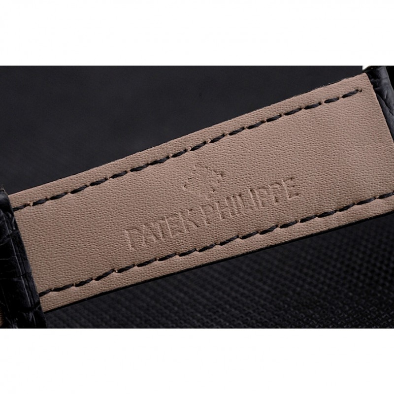Bracciale: Patek Philippe e calore logo in rilievo nero cinturino in pelle di coccodrillo con Patek Philippe e logo inciso fibbia in acciaio inox lucido gancio-fibbia