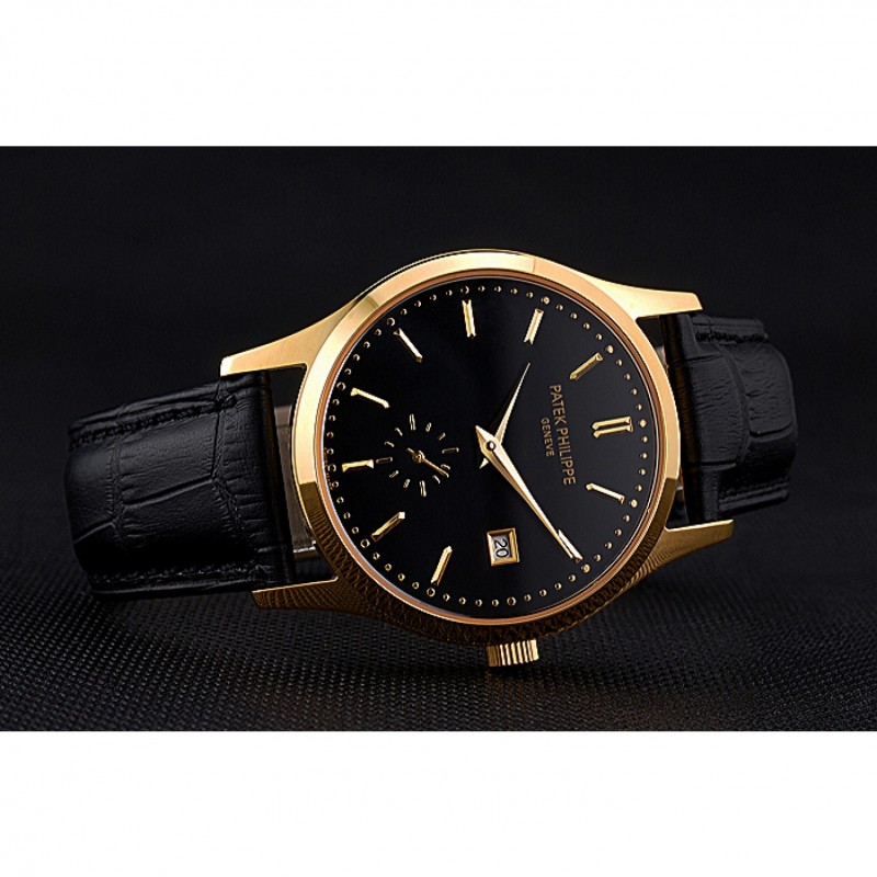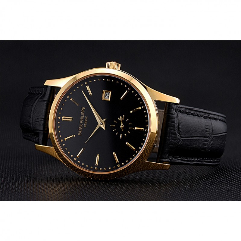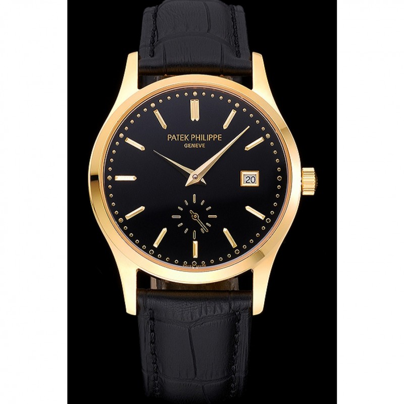 Patek Philippe Calatrava quadrante nero cassa in oro cinturino in pelle nera 622.845